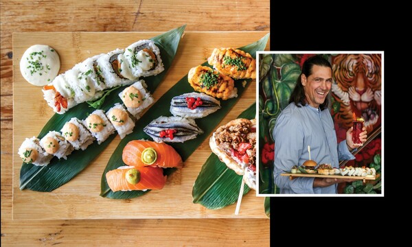 Για μία ακόμα φορά ο επιχειρηματίας Αλέξανδρος Συρόπουλος, γνωστός για τα επιτυχημένα concepts στον χώρο της εστίασης, έρχεται να ταράξει τα «γαστρονομικά νερά» της πόλης, προτείνοντας κάτι πρωτοποριακό: το ελληνικό σούσι! Σε συνδυασμό με έναν χώρο όπου το interior design πραγματικά εντυπωσιάζει. Περπατώντας στην πλακόστρωτη Αιόλου, ξαφνικά το τοπίο αλλάζει και γεμίζει εξωτικούς παπαγάλους, κοκοφοίνικες, πουλιά του παραδείσου, ελέφαντες, ιπτάμενες μαϊμούδες και νωχελικές τίγρεις. Ένα ιδανικό σκηνικό για να απολαύσουμε ελληνικό σούσι με συνταγές που δεν υπάρχουν πουθενά στον κόσμο και αξίζει να δοκιμάσετε. Η ελληνική βερσιόν της ιαπωνικής κουζίνας είναι κάτι το εκπληκτικό και σε αυτό βοήθησε και η ελληνική φύση, που, ως γνωστόν, έχει όλα αυτά τα μαγικά υλικά που μπορούν ανά πάσα στιγμή να απογειώσουν τον ουρανίσκο μας.