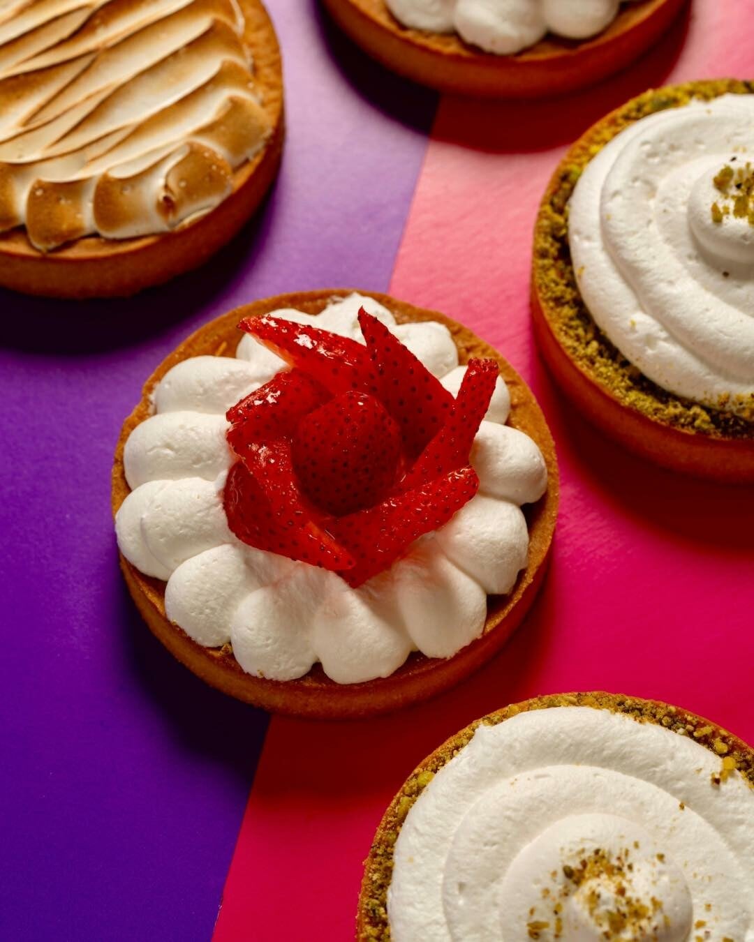 Μικρές αλλά γεμάτες γλύκα, οι ατομικές τάρτες του Melissa Define Pastry στο Περιστέρι συνδυάζουν τραγανή ζύμη και βελούδινη κρέμα με φρέσκες φράουλες. Η κλασική γεύση σε ατομική δόση απόλαυσης.