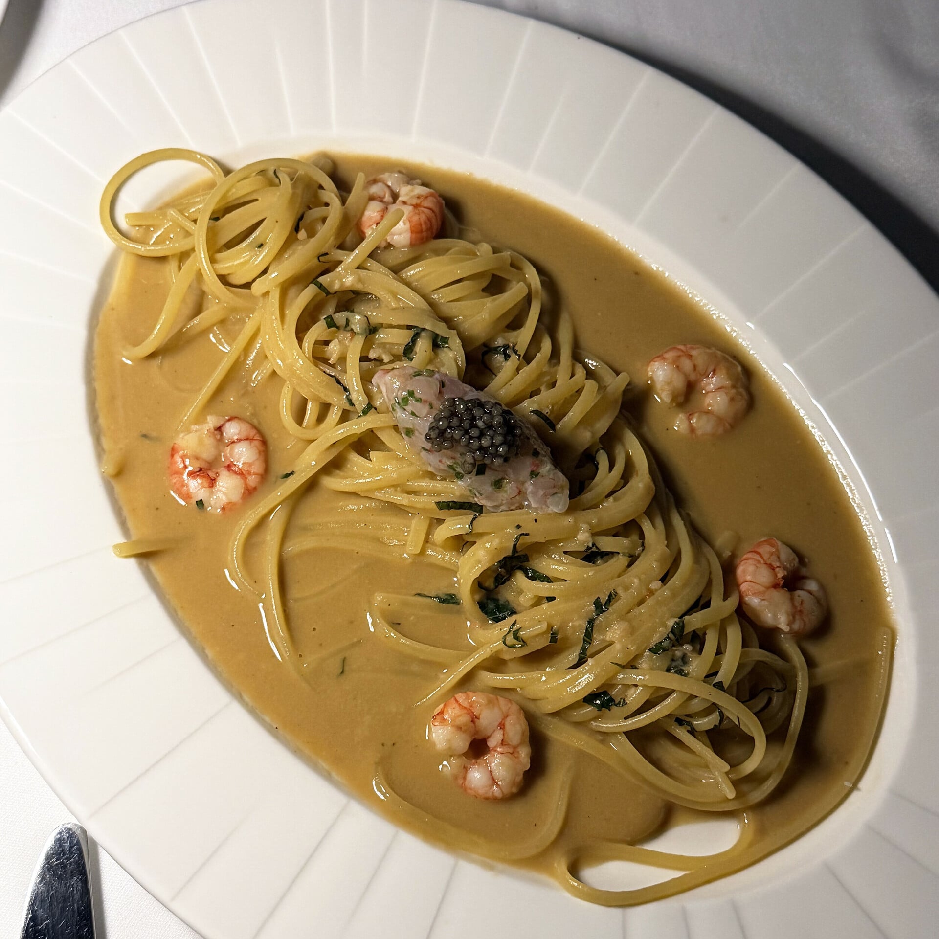 Ζυμαρικά με ταρτάρ γαρίδας στο Atelier Παπαϊωάννου