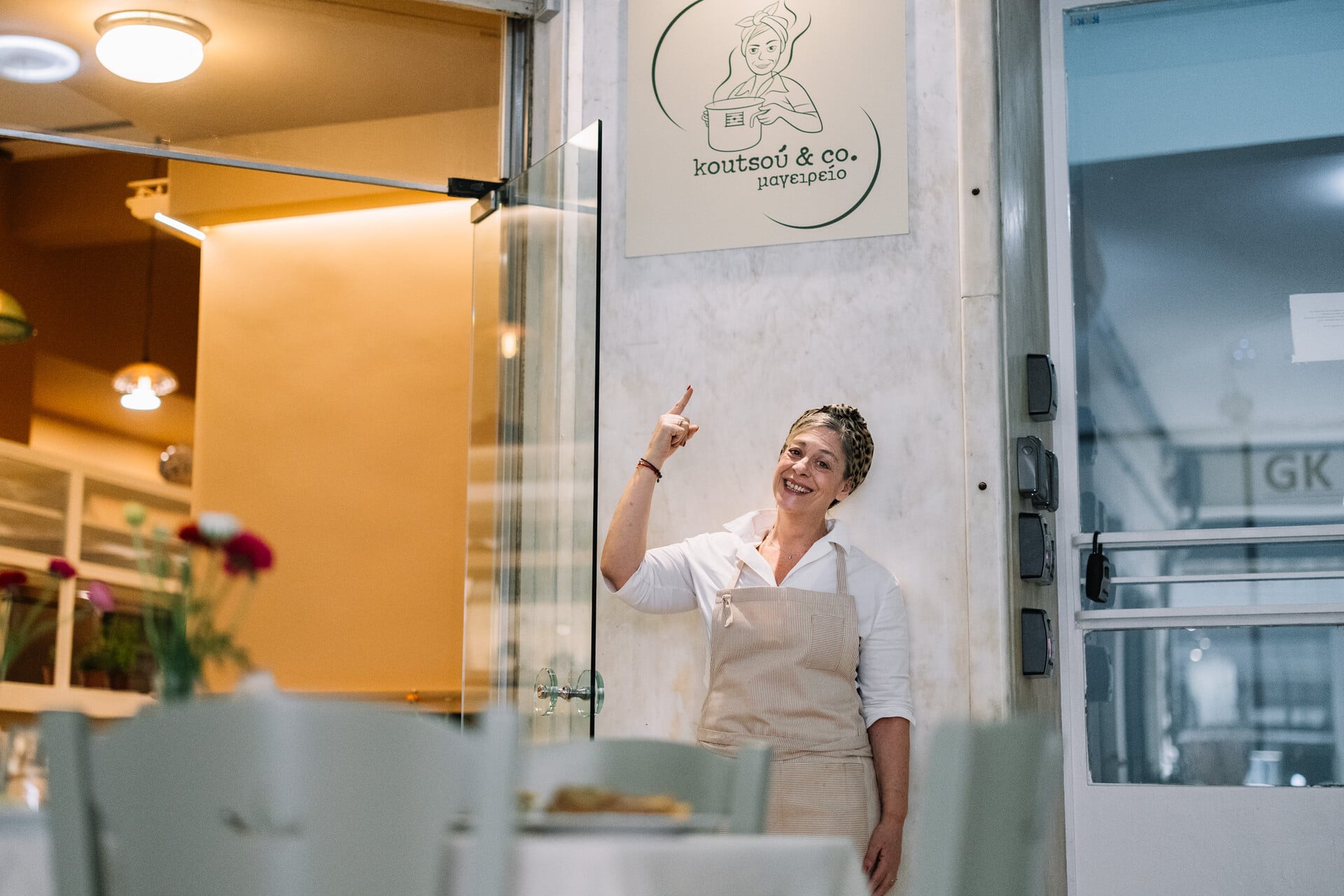 Το Koutsou & Co έχει για σήμα του το πρόσωπό της σκιτσαρισμένο με εκείνο το φακιόλι που είναι χαρακτηριστικό του στυλ της. Θα είναι μεν μαγειρείο, όμως με άλλα φαγητά από αυτά που έχουμε συνηθίσει σε αυτού του είδους τα μέρη. Βγάζει αυγά από λαβράκι τηγανητά, «αυτό, αν το παστώσεις, είναι το αυγοτάραχο, αλλά δεν τα τρώει έτσι ο κόσμος, δεν τα πετυχαίνεις έξω. Έχει ψαράδικο ο αδελφός μου στο Μαρούσι και κατά καιρούς πήγαινα κι έκανα μαθητεία περισσότερο παρά ταμείο. Όλα αυτά τα κομμάτια τα μαζεύαμε και τα δίναμε στους λίγους πελάτες που τα ήθελαν ή τα πέρναμε στο σπίτι και τα τρώγαμε εμείς». Ο αδελφός της, λοιπόν, θα της στέλνει τα «κλεμμένα», όπως τα λέει, τις καραβίδες και τα όστρακα για τα οποία θέλει να νιώθει ασφαλής.