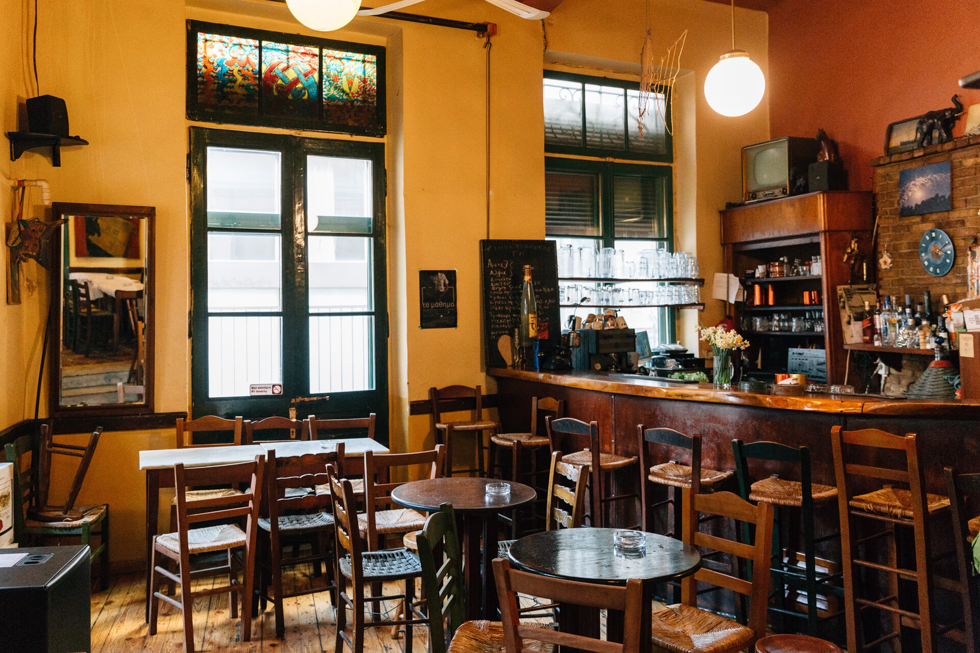 Δεν είναι Πέμπτη βράδυ ή Κυριακή μεσημέρι που παίζει ζωντανό σπαρταριστό ρεμπέτικο χωρίς μικρόφωνο, αλλά παρατεταγμένα στο μπαρ τα παλικάρια −αν ζούσαν το '30 θα τους έλεγες κλασικούς ρεμπέτες− σιγοτραγουδάνε, χτυπούν τον ρυθμό, θυμούνται στίχους, τους ξεφεύγει και μια πονεμένη κορόνα, ρίχνουν και καμιά έως πάμπολλες ματιές σε μας τα κορίτσια − μόνα, σχεδόν σκιαχτήκαμε, τόσο έχουμε ξεχάσει πια ότι υπάρχει και κάτι ωραίο που λέγεται φλερτ, πάψαμε να τους κοιτάμε λες και θα μας κλέψουν το πορτοφόλι, βοήθησε σ' αυτό και η φίνα ρακή αλλά έχει και ηπειρώτικο, γνήσιο, εγγυημένο τσίπουρο.