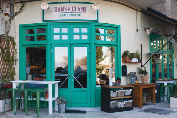 Το Hams & Clams είναι ένα oyster & jamon bar που άνοιξε λίγο πριν από το καλοκαίρι δίπλα στο «αδελφάκι» του Corks & Forks. Μικρός, αλλά πολύ ζεστός και όμορφα διακοσμημένος χώρος που θυμίζει delicatessen που θα συναντούσατε στην Ισπανία και στη Νότια Ιταλία, το Hams & Clams είναι ένα από τα μαγαζιά που αξίζει να γνωρίσετε. Στην ανοιχτή κουζίνα του μπορείτε να δείτε τηγάνια να φλέγονται, ενώ στον μαρμάρινο πάγκο ακριβώς μπροστά σας κόβονται το jamon και τα τυριά με περισσή προσοχή. Αν είστε φαν περισσότερο των θαλασσινών γεύσεων, στο μενού θα βρείτε ωμά στρείδια, πορφύρες, σφηνάκια αχινού, θαλασσινές μπρουσκέτες με στρείδια, αχνιστούς πετροσωλήνες και γυαλιστερές σε σφηνάκι. Αν, όμως, προτιμάτε πιο γήινες γεύσεις, τότε ρίξτε μια ματιά στα εξαιρετικά jamon και culatelo που έχει στην κουζίνα του, καθώς και σε άλλα πιάτα μεσογειακής προέλευσης. Θα τα συνδυάσετε ιδανικά με κάποιο κρασί ή μπίρα, είτε επιλέγοντας κάποιο κοκτέιλ.