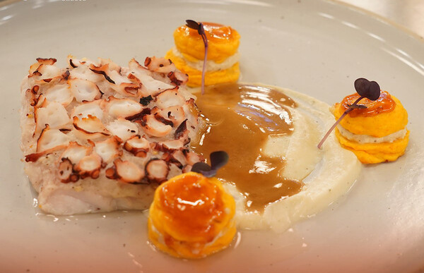 Θράψαλο σχάρας με φακές σαλάτα & λωτό