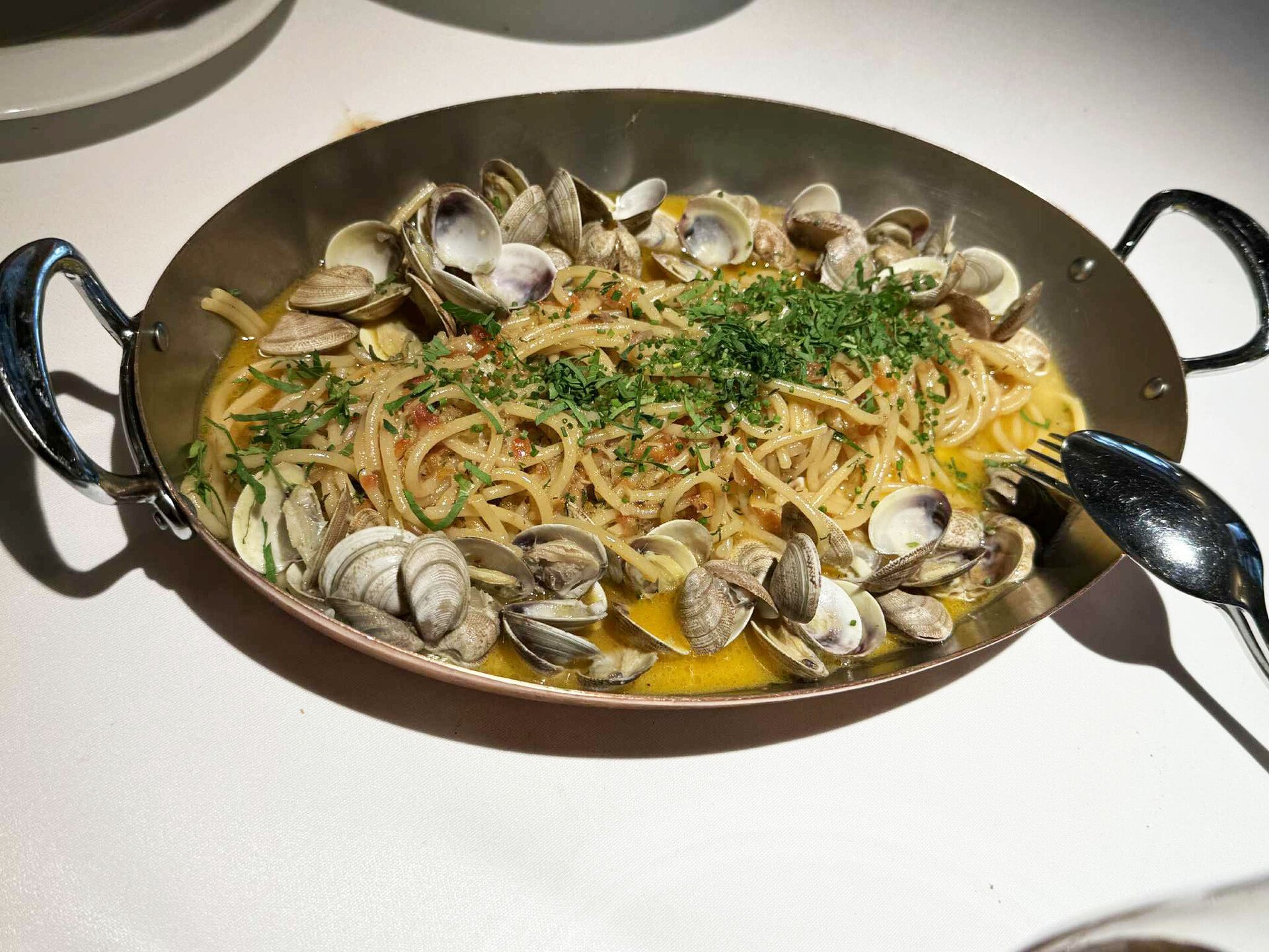 Λατρεύω την απλοϊκή με όστρακα του Κώστα Παππά στον Παπαϊωάννου, το κάτι σαν cacio e pepe με ταρτάρ γαρίδας από τα Τρία Γουρουνάκια στη Θεσσαλονίκη, αγαπώ το πάκερι με το ψάρι που κάνει ο Μάτσας στη Striggla, το τορτέλι με τον αστακό του Osteria Mamma, τη φανταστική σαβόρο του Ovio. Μια ιδιαίτερη αναφορά θα κάνω στη spaghetti alle vongole γιατί είναι η πιο απλή του κόσμου: λάδι, σκόρδο, βούτυρο και vongole ή όστρακα! Την πρωτοέφαγα στο Nanninella του Μαρτσέλο στην Αγία Παρασκευή και πρόσθετα και μια κουταλιά παρμεζάνα, φέρνοντας σε απόγνωση τον Ναπολιτάνο. Λατρεύω αυτή στο Ιώδιο γιατί έχει φανταστικό ζωμό, και λατρεύω και του μπαμπά μου!