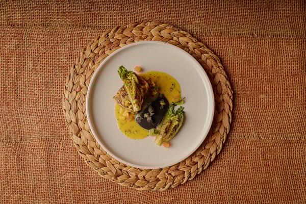 Πολλές φορές ρωτάνε τον Άγγελο Μπακόπουλο ποια είναι η ταμπέλα που βάζει στην κουζίνα του, η οποία συνήθως χαρακτηρίζεται (και είναι) «ελληνική δημιουργική». Ρίχνω μια πρώτη ματιά σε αυτό το τελευταίο μενού που έχει επιμεληθεί, υπάρχουν τοπικές γεύσεις αλλά και διάφορες πινελιές με διεθνείς αναφορές. «Αυτό που επιδιώκω όταν μαγειρεύω ή όταν στήνω ένα πρότζεκτ είναι ό,τι σερβίρω να έχει γεύση, να είναι νόστιμο. Επιλέγω πάντα ελληνικά προϊόντα, το να βάλω λοιπόν σε μια σάλτσα λίγη σόγια ή λίγο ponzu δεν κάνει το φαγητό μου fusion, το οποίο είναι μια ολόκληρη φιλοσοφία, μια κουζίνα συνδεδεμένη με ταξίδια».