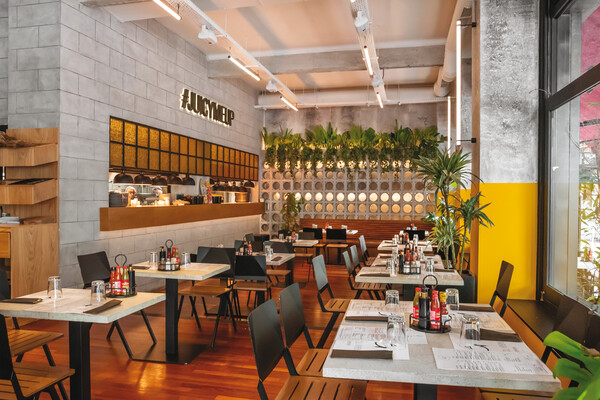 Το στοιχείο του ξύλου, το πράσινο που απλώνεται μέσα και έξω, δημιουργώντας την αίσθηση ενός μεγάλου αίθριου-κήπου, και η cool ατμόσφαιρα με το μότο «juice me up» να ξεχωρίζει σε καλωσορίζουν να δοκιμάσεις κάποια από τα καλύτερα μπέργκερ της Αθήνας.