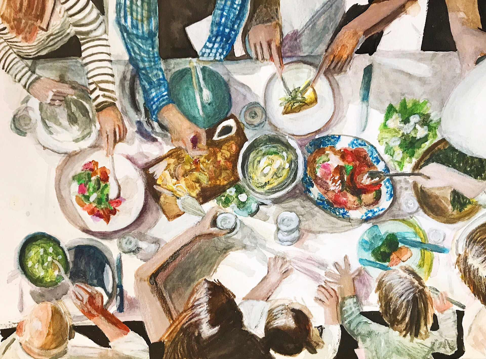 Στο πέρασμα των χρόνων, όμως, γίναμε και οι τέσσερις κάπως περισσότερο χορτοφάγοι. Αρχίσαμε να απολαμβάνουμε ένα κοινό φαγητό όχι μόνο γιατί θέλαμε να μοιραζόμαστε το ίδιο, ώστε να μη νιώθει το παιδί «ο μοναδικός απέξω» στο ίδιο του το σπίτι, αλλά και γιατί, όταν τελειώναμε να ψιλοκόβουμε τα λαχανικά, δεν θέλαμε να ξεκινήσουμε να μαγειρεύουμε ένα γιουβετσάκι για όσους από εμάς, τέλος πάντων, δεν πιστεύαμε ότι οι αγελάδες ευθύνονται για τα υψηλά ποσοστά διοξειδίου του άνθρακα στον εύθραυστο Γαλάζιο Πλανήτη Γη.