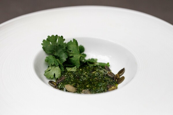 Πέστο με φρέσκο κόλιανδρο και κολοκυθόσπορο