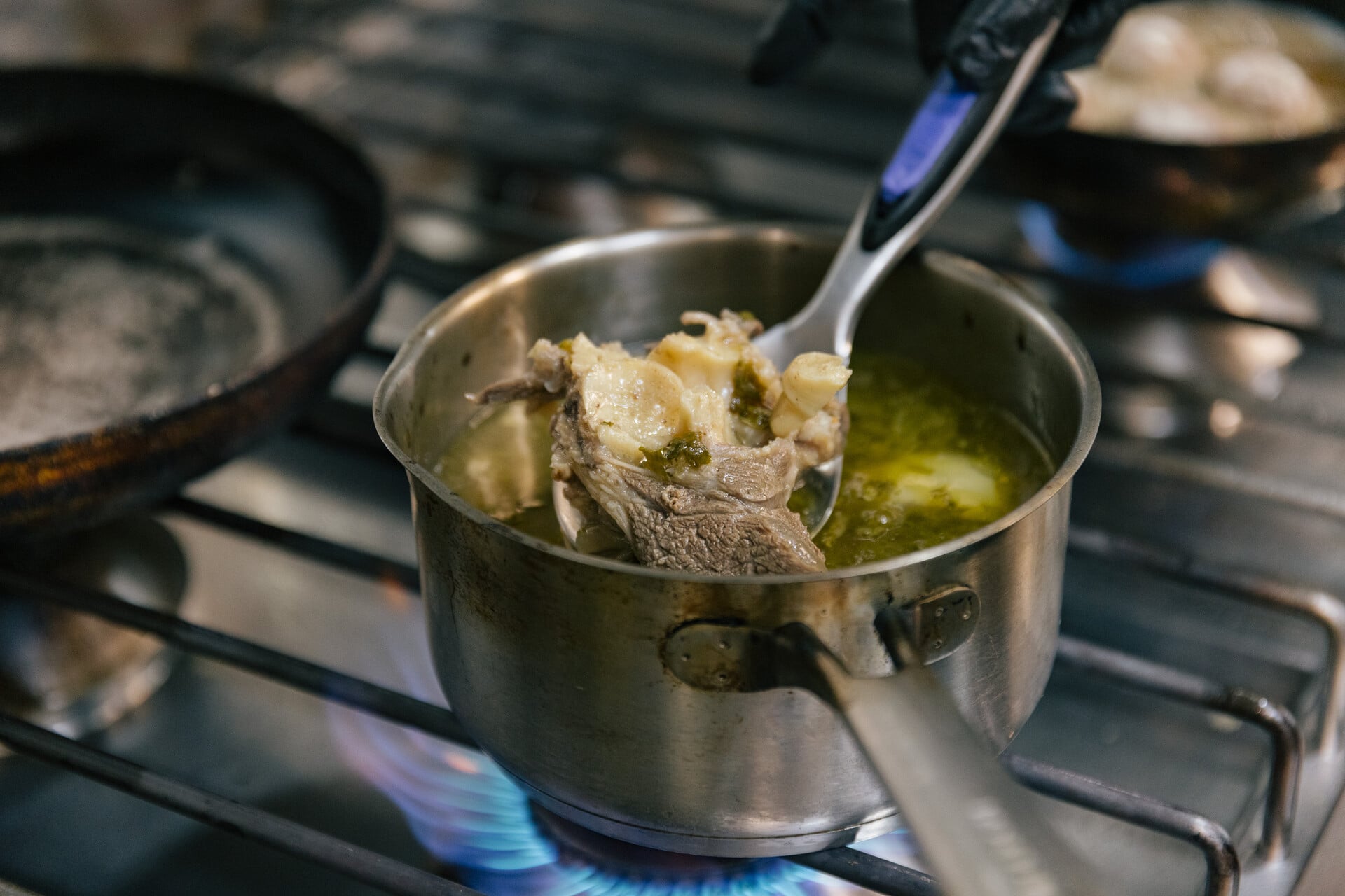 Με μια πρώτη ματιά, ανακαλύπτεις ότι το μενού κοιτάζει και βουνό και θάλασσα, με κλασικούς μεζέδες και χειμωνιάτικα comfort πιάτα. Ξεκινήσαμε με κολοκυθοκεφτέδες (€6,80) που μόλις είχαν βγει από καλό τηγάνι, τραγανοί απ’ έξω, αφράτοι και αρωματικοί μέσα, συνοδευμένοι από ελαφρύ τζατζίκι και φέτες ντομάτας. Σε βαθύ πιάτο σερβιρίστηκαν τα άγρια χόρτα (€5,50) που ήρθαν ζεστά, λουσμένα με καλό ελαιόλαδο και μπόλικο λεμόνι και εξαφανίστηκαν σε χρόνο μηδέν. Ακολούθησαν τα χειροποίητα ντολμαδάκια γιαλαντζί (€6) που προσγειώνονται στο τραπέζι συνοδεία γιαουρτιού και μοσχοβολούν άνηθο και μυρωδικά σε κάθε μπουκιά. Πολύ καλές οι χειροποίητες χρυσές τηγανητές πατάτες (€3,90) που έρχονται μόλις βγουν από το τηγάνι – τρώγονται καυτές με το χέρι. Καλοφτιαγμένη η τυροκαυτερή (€4,50), με σωστή ένταση και ισορροπία, που τη φτιάχνουν στην κουζίνα τους, όπως διευκρινίζει η Μόνικα τη στιγμή της παραγγελίας. Το ίδιο και τα τυροπιτάκια (€6,80) με το τραγανό φύλλο και την πλούσια γέμιση.