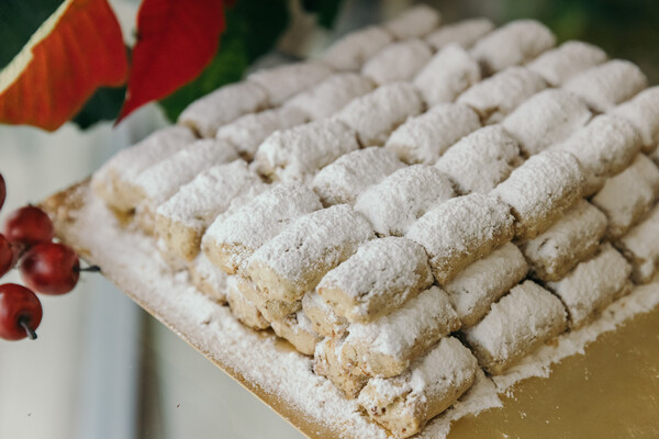 Εκτός από βουτυράτους κουραμπιέδες και ζουμερά, τραγανά μελομακάρονα, πρέπει να δοκιμάσεις την παντός καιρού ταχινόπιτα που λιώνει στο στόμα λες και είναι μαλλί της γριάς, αλλά εκατό φορές πιο νόστιμο και ουσιώδες, το αφράτο, ινώδες τσουρέκι με μαστίχα και μαχλέπι, ή τις εκδοχές του με σοκολάτα, με σοκολάτα και χουρμάδες, και εκείνο με σταφίδα και καρύδι. Φυσικά, τη βασιλόπιτα-τσουρέκι που είναι και των ημερών, αλλά και πολλά κουλούρια σε μέγεθος μπουκιάς, που κατακλύζουν το μαγαζί με την ποικιλία και τα αρώματά τους, έτσι όπως είναι επιμελώς τακτοποιημένα στα ψάθινα καλάθια που στολίζουν τους τοίχους.