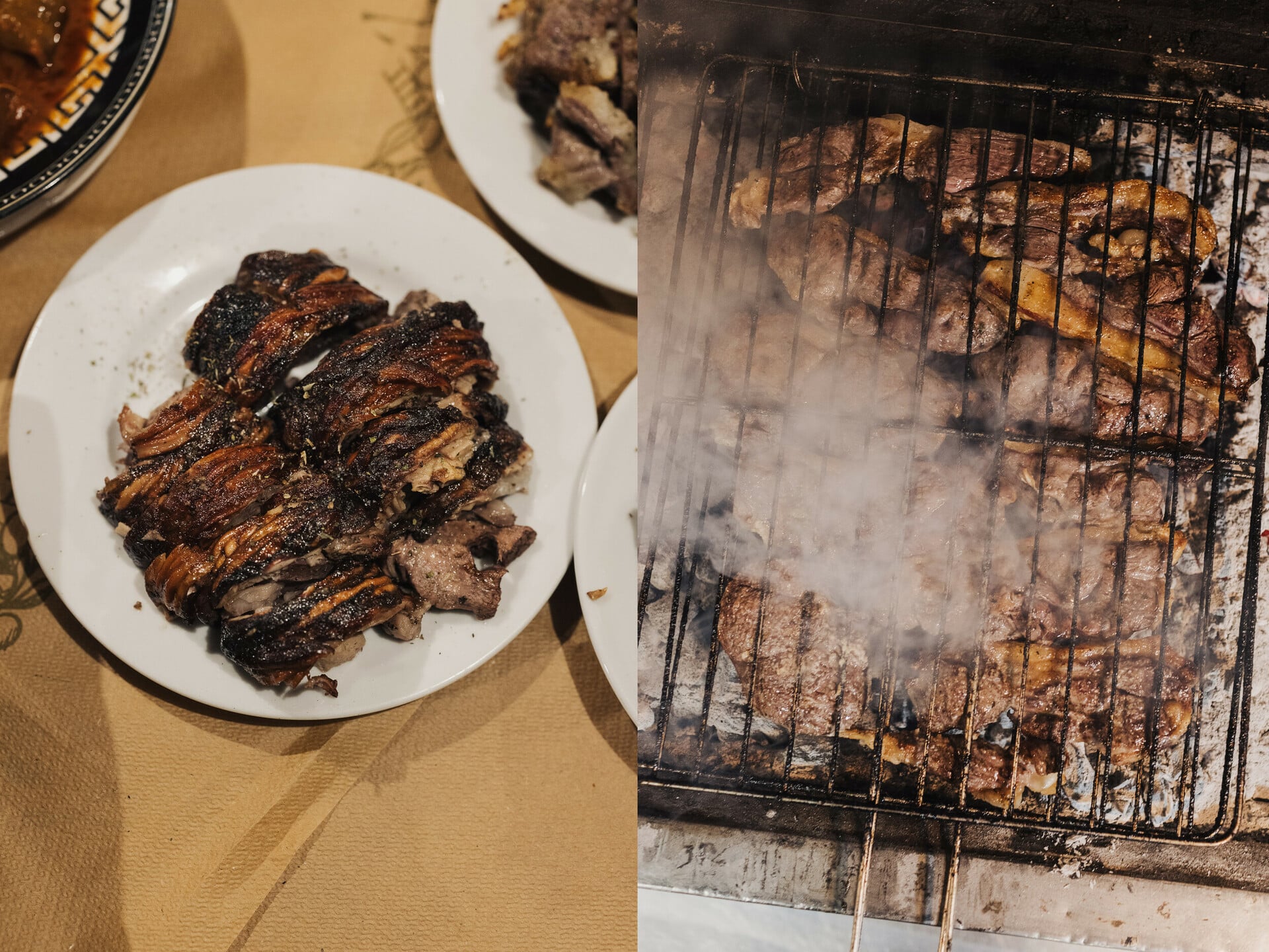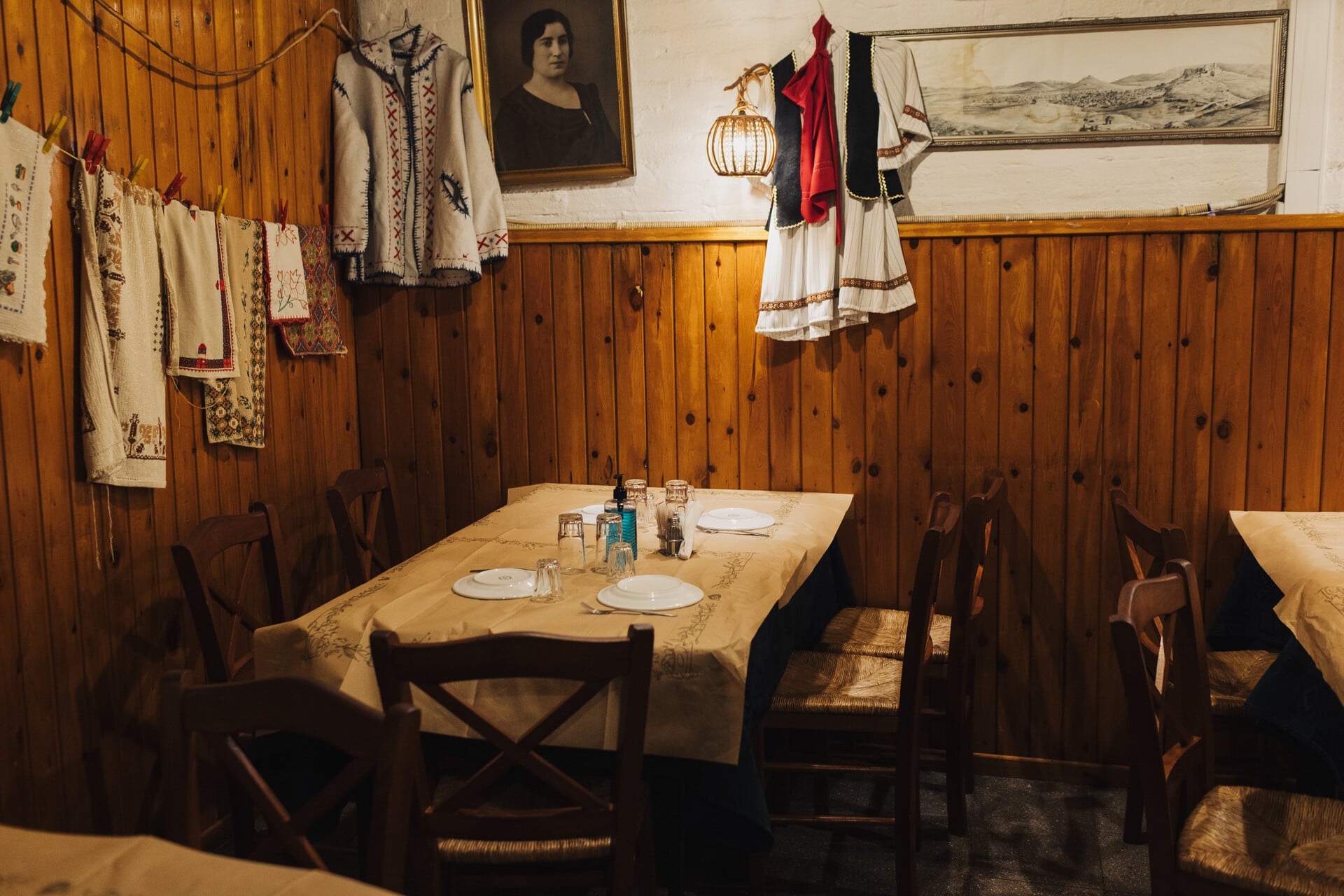 «Το χωριό του μπαμπά μου έχει 1.500 κατοίκους κι έχει οχτώ ταβέρνες», μας λέει η Χρυσούλα, η κόρη του Παναγιώτη και της Γεωργίας. «Εκεί έρχονται και τρώνε κρέατα όλοι από τη Λευκάδα και τη γύρω περιοχή, Γιάννενα, Άρτα. Είναι κρεατοφαγική περιοχή, γι’ αυτό κάνουμε κι εμείς τις σούβλες, τα ψητά και όλα αυτά τα κρέατα που έχουμε στο μαγαζί. Τα κρέατα έρχονται από τη Βόνιτσα, τον νομό Αιτωλοακαρνανίας – ό,τι ζώο βόσκει γύρω απ’ τον Αμβρακικό είναι το καλύτερο. Και γενικά οι συνταγές είναι από εκεί, το κοντοσούβλι προβατίνας, το σπληνάντερο, το κοντοσούβλι με την μπόλια, δεν τα βρίσκεις εύκολα στην Αθήνα. Έχουμε ακούσει από κάποιον σχόλιο ότι το κοκορέτσι “είναι καλύτερο ακόμα κι απ’ του τάδε στο χωριό μου” – Και το χωριό του φημίζεται για το κοκορέτσι! Τις συνταγές για τα ψητά τις έχει βγάλει ο μπαμπάς μου, παρότι τώρα έχουμε νέο ψήστη».
