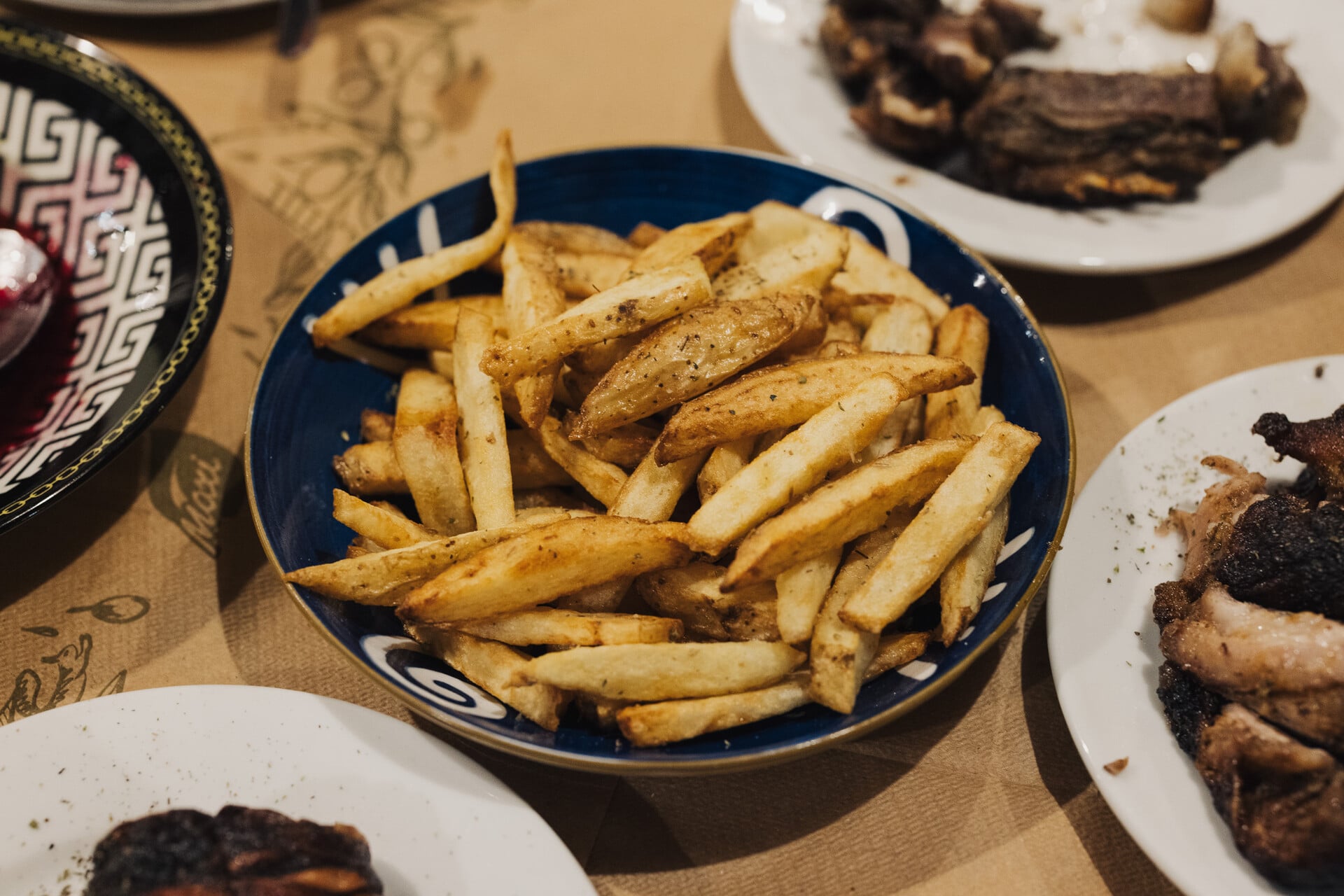 Στο τραπέζι έρχονται τα σαλιγκάρια στιφάδο, ίσως τα καλύτερα σαλιγκάρια που μπορείς να βρεις στην Αθήνα –για τα οποία μου είχε μιλήσει με ενθουσιασμό ο Νίκος Μπίλλης–, παντζάρια ξιδάτα με ξινόμηλο, τζατζίκι σπιτικό (τούρμπο), κοκορέτσι αγρινιώτικο και δύο ειδών κοντοσούβλι: προβατίνας και χοιρινό – ένα απίθανο, ζουμερό κρέας που ψήνεται μέσα σε αρνίσια μπόλια, βόμβα χοληστερίνης αλλά απίστευτα γευστικό. Ακολουθούν τα αρνίσια παϊδάκια, άλλη μια σπεσιαλιτέ του μαγαζιού. Τρυφερά και νόστιμα, κομμένα στο σωστό πάχος και με καβουρδισμένο λίπος «που σε στέλνει στα ουράνια», παϊδάκια προβατίνας και πατάτες τηγανητές με τη φλούδα. «Είδα σε ένα καλό εστιατόριο που με πήγε ο γιος μου ότι τις σερβίρουν έτσι και δεν καθαρίσαμε ξανά πατάτες», λέει η κυρία Γεωργία. «Τις φέρνουμε από την Κύπρο ή την Αίγυπτο και τις τρίβουμε και τις πλένουμε προσεκτικά προτού τις κόψουμε για το τηγάνι».
