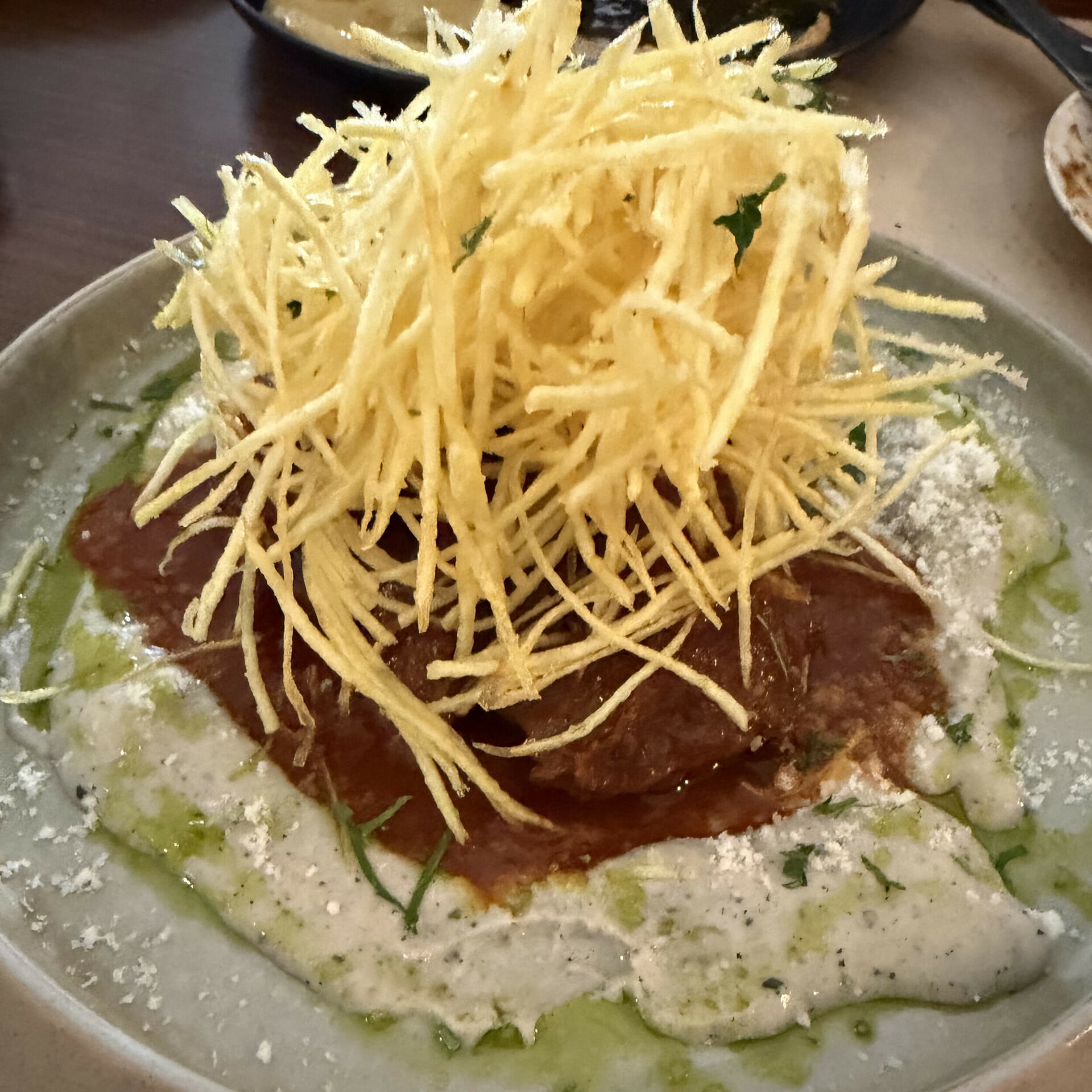 Το λένε μοσχάρι με κρέμα μελιτζάνα και τσιπς πατάτας, αλλά είναι το απόλυτο χιουνκιάρ μπεγιεντί.
