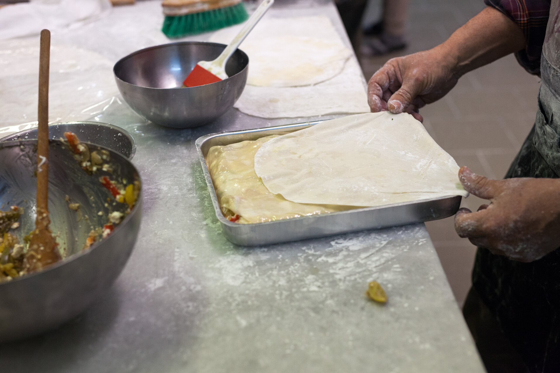 Μας υποδέχθηκε στο εργαστήριο ζαχαροπλαστικής «Δήμητρα Γουναρίδη», εκεί όπου καθημερινά συνομιλεί με τις ζύμες και τα φύλλα, και μας έδειξε την τέχνη να ανοίγουμε φύλλο και να φτιάχνουμε πίτες.