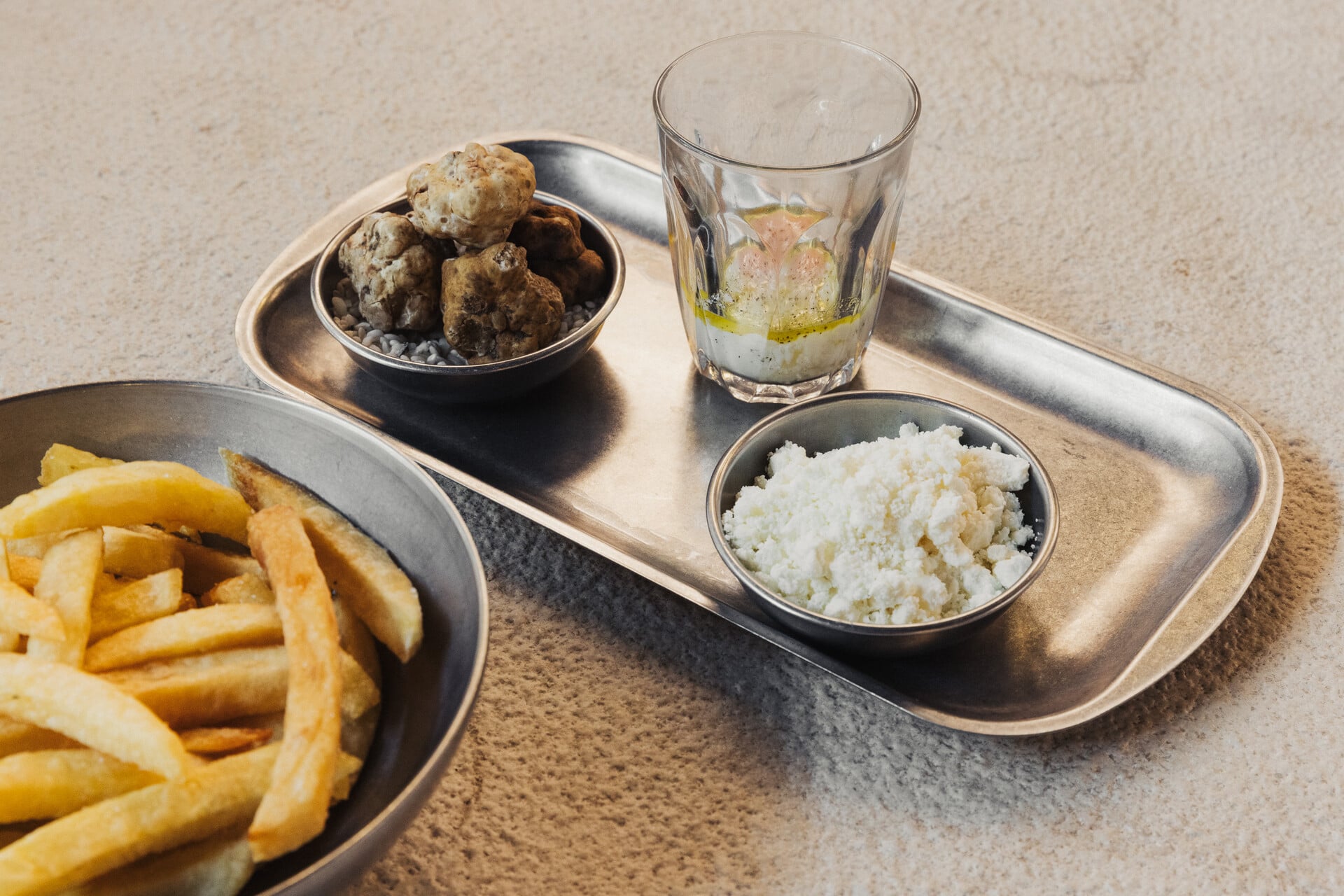 Ο ίδιος πιστεύει ότι ο Έλληνας καταλαβαίνει το καλό φαγητό. Ίσως όχι πάντα την τεχνική ή τον κόπο που κρύβεται από πίσω, σίγουρα όμως το αν είναι τίμιο. Φέρνει ως παράδειγμα τα μπέργκερ που φτιάχνει με την ομάδα του στον δικό του χώρο, στο Four Hands, από το ψωμάκι μέχρι τις πίκλες, και συχνά δέχεται το σχόλιο ότι είναι «ακριβά». «Αν δει κάποιος τι δίνει σε μεγάλες αλυσίδες, πολλές φορές είναι τα ίδια λεφτά», λέει. Η διαφορά, όμως, είναι στα υλικά, στη διαδικασία, στη φροντίδα. Και εκεί ακριβώς βρίσκεται και το μεγάλο στοίχημα, πώς προβάλλεις την αξία χωρίς να χρειάζεται να την εξηγείς συνεχώς. Όταν μιλά για τη μαγειρική του ταυτότητα, αποφεύγει και πάλι τις ταμπέλες. Δεν θα πει «fusion», δεν θα πει «fine dining», δεν θα πει «παραδοσιακή», θα πει ότι τον εκφράζει η μεσογειακή κουλτούρα με ελληνικά υλικά, ότι του αρέσει το γιαούρτι με μέλι στην πιο απλή του μορφή αλλά και η ιδέα να το παρουσιάσει με έναν πιο σύγχρονο τρόπο. Του αρέσουν οι πατάτες –«έχω γίνει μάστερ της τηγανητής πατάτας», λέει γελώντας–, του αρέσουν τα θαλασσινά, το ελαιόλαδο, τα ελληνικά φρούτα. Του αρέσει η πρώτη ύλη να «μιλάει».