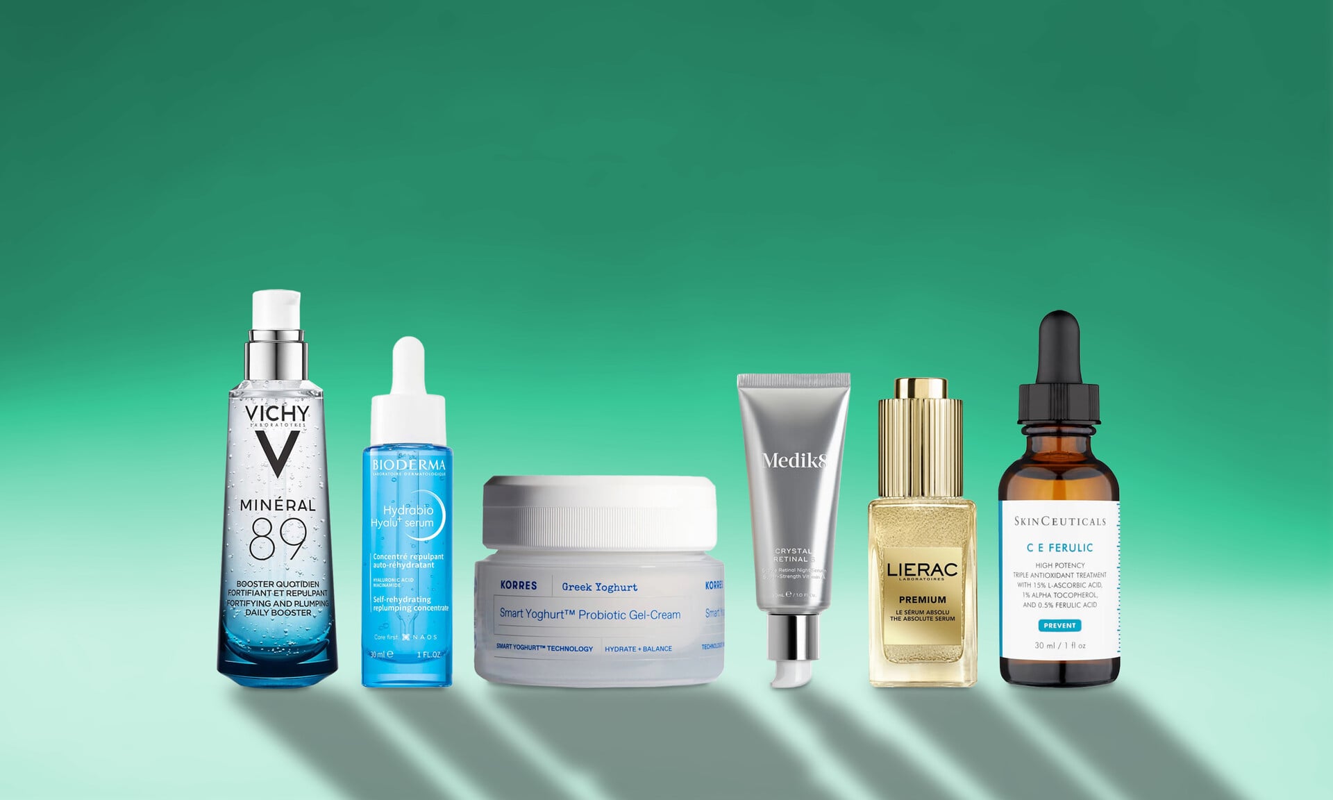 Στην πλευρά της αντιγήρανσης, το C E Ferulic της SkinCeuticals βασίζεται στη βιταμίνη C με φερουλικό οξύ για ισχυρή αντιοξειδωτική προστασία απέναντι στη φωτογήρανση, η Crystal Retinal της Medik8 αξιοποιεί τη ρετιναλδεΰδη για πιο στοχευμένη δράση σε ρυτίδες και υφή και το Premium The Absolute Serum της Lierac προσφέρει πιο ολοκληρωμένη φροντίδα, συνδυάζοντας φυτικά δραστικά συστατικά με νιασιναμίδη για στήριξη της πυκνότητας και βελτίωση της υφής όταν τα σημάδια γήρανσης είναι πιο εμφανή.