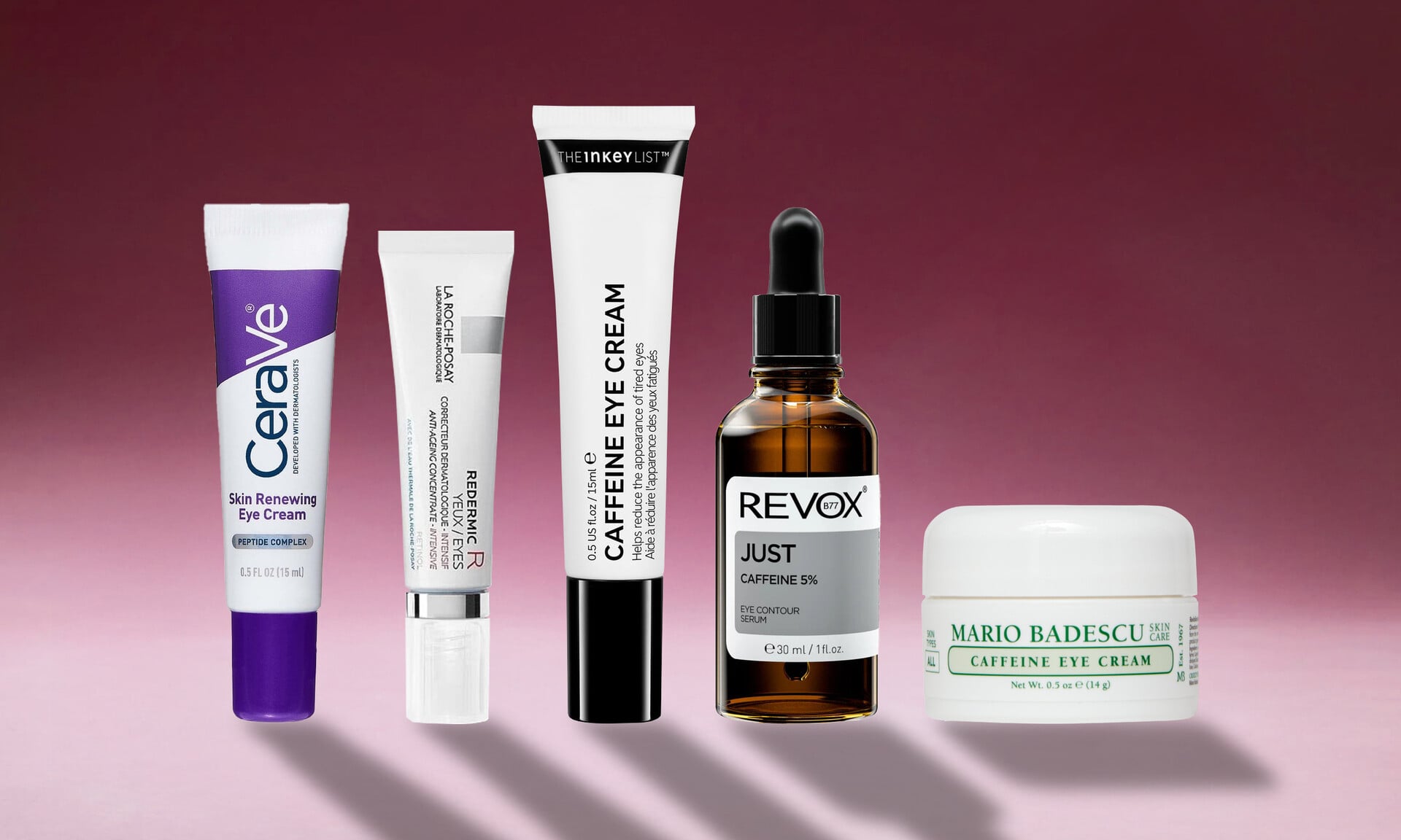 Η Caffeine Eye Cream της Mario Badescu κινείται στη λογική της απλής, καθημερινής υποστήριξης. Καφεΐνη σε συνδυασμό με βοτανικά εκχυλίσματα, σε ελαφριά υφή που λειτουργεί κυρίως ως πρωινή αποσυμφόρηση πριν από το μακιγιάζ. Η Caffeine Eye Cream της Inkey List προσθέτει το πεπτίδιο Matrixyl 3000™, μεταφέροντας το βάρος και στη λείανση της υφής και στις λεπτές γραμμές. Εδώ η καφεΐνη δεν λειτουργεί μόνη της αλλά εντάσσεται σε μια σύνθεση που στοχεύει παράλληλα στην αντιμετώπιση του πρηξίματος και των πρώιμων σημαδιών γήρανσης. Η JUST Caffeine 5% της Revox B77 είναι η πιο προσιτή «καθαρή» εκδοχή: με υψηλή συγκέντρωση καφεΐνης σε μορφή ορού και υδαρή υφή, απευθύνεται σε πρωτάρηδες που θέλουν στοχευμένη δράση χωρίς πρόσθετα συστατικά. Η Skin Renewing Eye Cream της CeraVe πάλι διαφοροποιείται μέσα από τη λογική της ενίσχυσης του δερματικού φραγμού. Καφεΐνη, πεπτίδια, νιασιναμίδη και ceramides συνεργάζονται, δίνοντας έμφαση όχι μόνο στην εικόνα των μαύρων κύκλων αλλά και στη συνολική ποιότητα της τόσο ευαίσθητης περιοχής. Η Redermic [R] Eyes της La Roche-Posay αλλάζει τελείως κατεύθυνση, ενσωματώνοντας ρετινόλη για πιο δραστική παρέμβαση στις ρυτίδες, με την καφεΐνη να λειτουργεί υποστηρικτικά στην όψη της κούρασης. Πρόκειται για μια επαναστατική φόρμουλα που απευθύνεται σε όσους θέλουν δράση αντιγήρανσης μαζί με πιο λαμπερό βλέμμα.