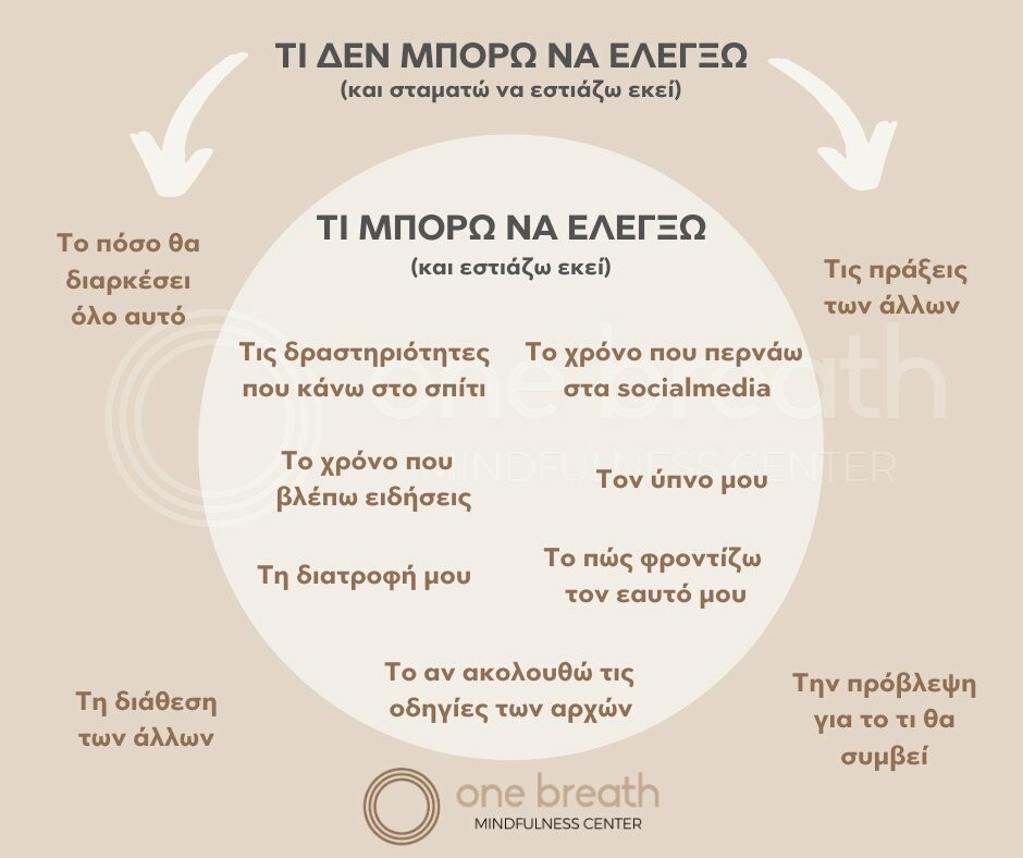 • Εστιάζουμε σε αυτά που μπορούμε να ελέγξουμε και αφήνουμε ό,τι είναι πέρα από τον έλεγχό μας