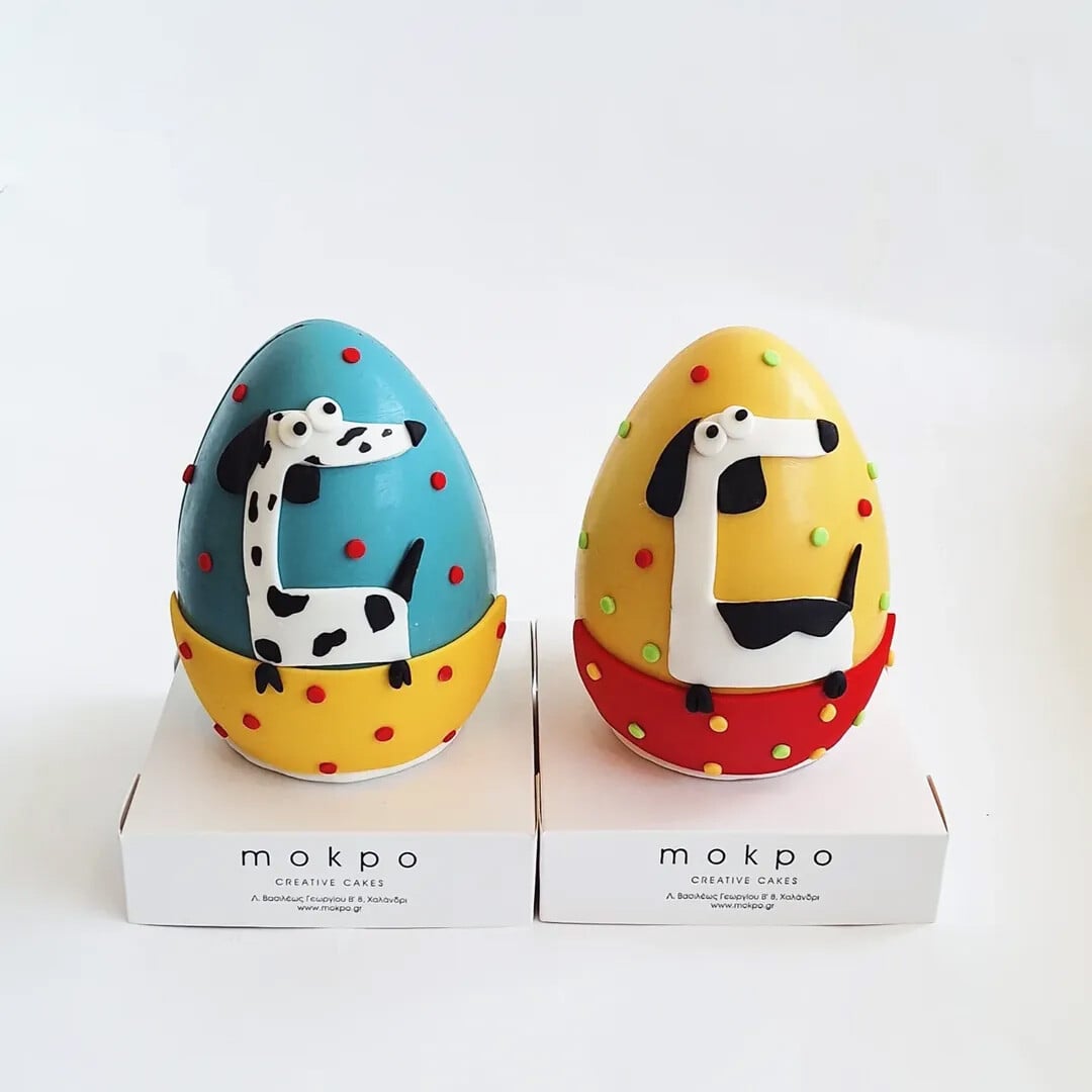 Τέλος, το σύγχρονο εργαστήριο ζαχαροπλαστικής Mokpo Creative Cakes (λεωφ. Βασιλέως Γεωργίου B΄ 8, Χαλάνδρι) αφήνει πίσω την αισθητική των παραδοσιακών σοκολατένιων αυγών και επιλέγει μια funky προσέγγιση, διακοσμώντας τις σοκολατένιες δημιουργίες του με σκυλάκια και παραδοσιακές ιαπωνικές ξύλινες κούκλες.
