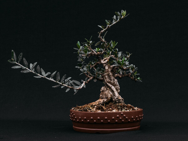 «Τα στυλ των μπονσάι έχουν προκύψει από τη φύση, αναπαριστούν κάποιο ηλικιωμένο δέντρο που κάτι έχει πάθει, έχουν μια κακουχία», μας λέει ο Μάνος Μαθιουδάκης, ο νεότερος από τους τρεις ανθρώπους που μας υποδέχονται. «Για μας είναι γοητευτικό ένα δέντρο να κρέμεται και να στηρίζεται από μια ρίζα, ένα δέντρο που έχει διαμορφωθεί από τον άνεμο, που έχει κλίση επειδή δεν το είδε φως ή επειδή φύτρωσε σε έναν βράχο και με τα χρόνια έφυγαν τα χώματα και έμειναν μόνο οι ρίζες του. Το δέντρο που φύεται σε αλπικό τοπίο και τα κλαδιά του πηγαίνουν προς τα κάτω λόγω του βάρους του χιονιού». Τα δέντρα που βλέπουμε μπροστά μας και θαυμάζουμε έχουν όλα τα χαρακτηριστικά του τέλειου μπονσάι. Είναι μικρού μεγέθους, με ξυλώδη κορμό και κλαδιά σε αρμονία με το μέγεθός τους και μικροσκοπικά φύλλα που έχουν προκύψει με υπομονή, σκληρή δουλειά, παρατήρηση και ιδιαίτερες τεχνικές που μαθαίνει κανείς με τον χρόνο και την εμπειρία.