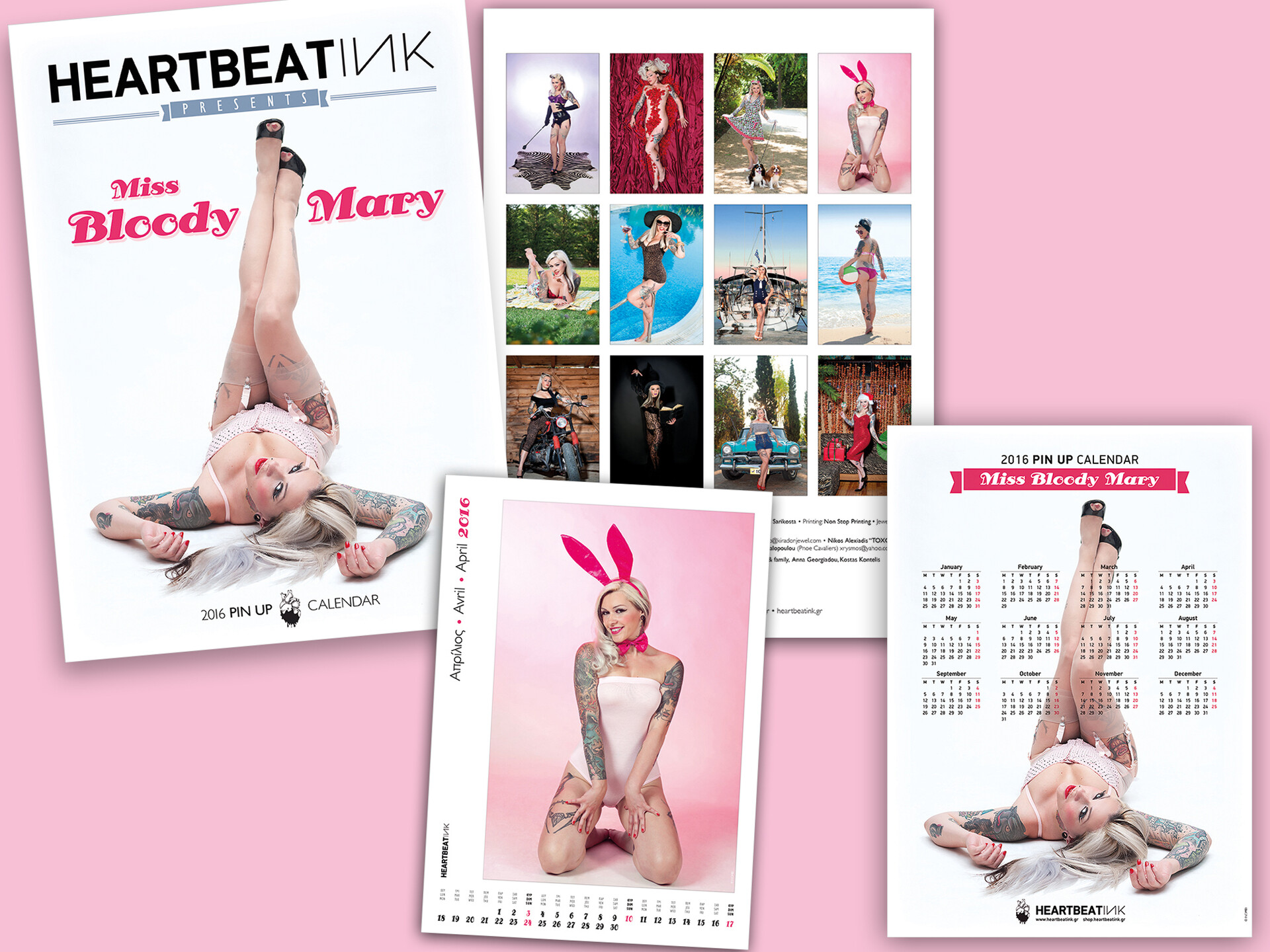 Το HeartbeatInk σε αυτή την πρώτη του έκδοση δημιουργεί ένα εμπνευσμένο και ποιοτικό ημερολόγιο φόρο τιμής στην pin up αισθητική που συνδέεται δημιουργικά με την τέχνη του tattoo και το burlesque. Η φωτογράφος Ινώ Μέη, απαθανάτισε όμορφες, παιχνιδιάρικες και γοητευτικές εικόνων με έμπνευση απο τα 50's αλλά και μια συγχρονη ματιά. Στόχος της κυκλοφορίας του ημερολογίου είναι η προβολή ενός υγειούς σώματος απενοχοποιημένου από τα κοινωνικά στερεότυπα ομορφιάς και σωματικής εμφάνισης. Τιμή 15 ευρώ - με τον κωδικό LIFOPINUP παίρνεις έκπτωση 5 ευρώ.