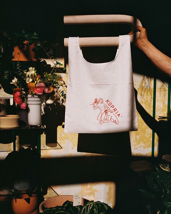 Στην Kopria (Ερεσού 30, Εξάρχεια, 211 1132535), στο πρώτο new age φυτοπωλείο που εμφανίστηκε σε αυτή την πόλη, εκτός από μεγάλη ποικιλία σε φυτά εσωτερικού χώρου και εντυπωσιακά μπουκέτα, έχουν δημιουργήσει μια σειρά από tote bags σε διαφορετικά μεγέθη και χρώματα (οι μικρές κοστίζουν 5 ευρώ, οι μεγάλες 19 ευρώ). Μπορείτε να τις δωρίσετε βαζόντάς τους ένα μικρό φυτό ή και σκέτες. Πολύ ωραίες tote bags (8 ευρώ) θα βρείτε και στον third wave φούρνο του Κολωνακίου, την Kora (Παναγιώτου Αναγνωστοπούλου 44, Κολωνάκι, 210 3627855), που έχει βγάλει τσάντες σε κίτρινο χρώμα, το οποίο χαρακτηρίζει και την πρόσοψή της, με ψωμιά και είδη βιενουαζερί σχεδιασμένα αφαιρετικά, όπως είναι και στην ταμπέλα της. Μπορείτε να παραγγείλετε και μέσω Wolt, προσωπικά θα το εκτιμούσα αν βάζατε και ένα ψωμί βρόμης (4,70 ευρώ) μέσα.