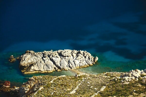 Άμα τον δεις από ψηλά, μοιάζει με μια μεγάλη καρδιά. Απέχει εννιά ναυτικά μίλια από τον ανατολικό κάβο της Αλοννήσου – είναι μακριά. Αν ρίξεις άγκυρα καταμεσής του όρμου και στρώσεις να κοιμηθείς στο κατάστρωμα του σκάφους μια αφέγγαρη καλοκαιρινή νύχτα, να, έτσι ν' απλώσεις τα χέρια σου, θα φτάσεις στ' αστέρια. Αλήθεια!