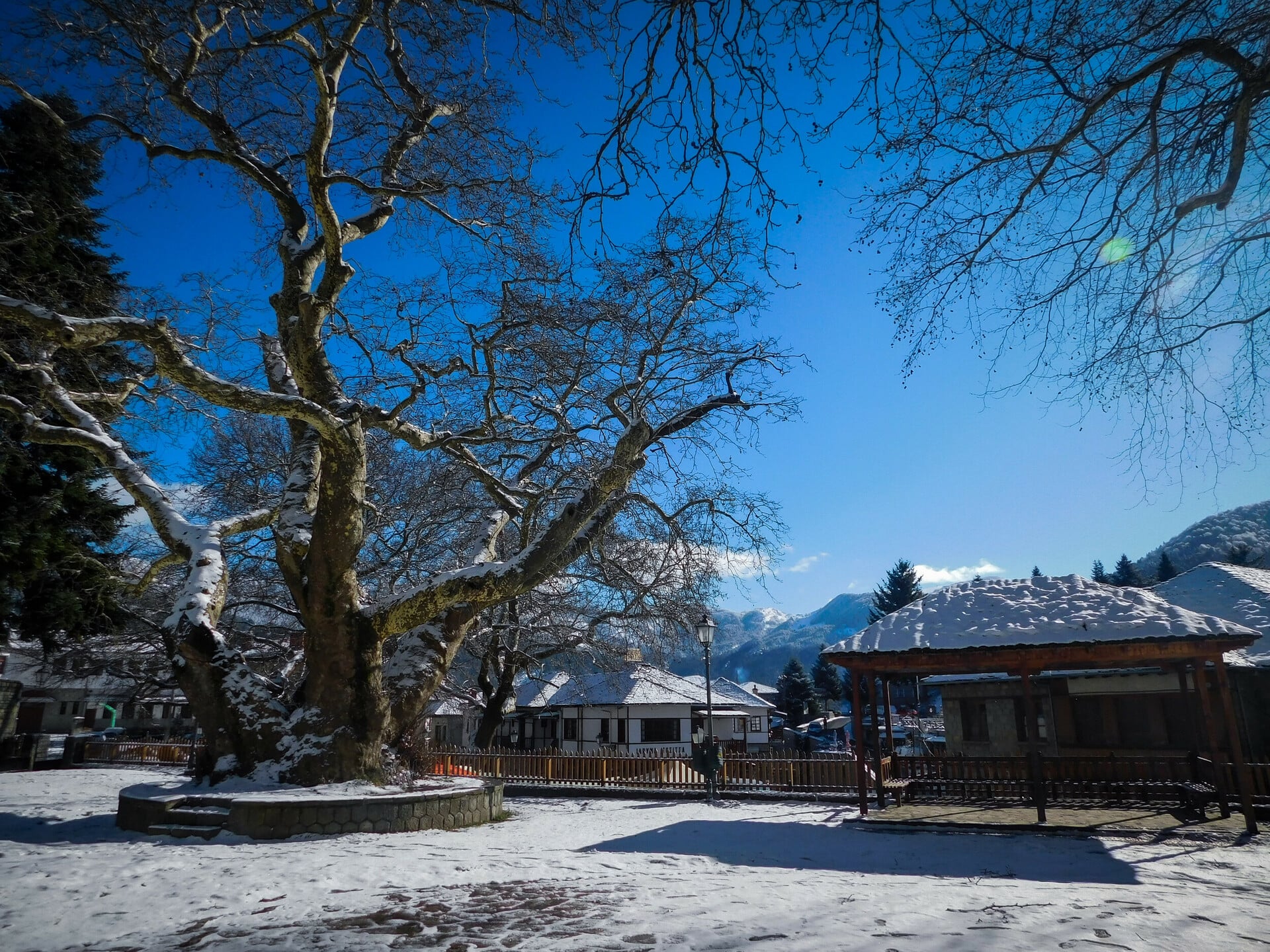 Μια κιτρινισμένη φωτογραφία με γέροντες που φορούν την παραδοσιακή μετσοβίτικη φορεσιά και κάθονται στα παγκάκια της κεντρικής πλατείας του χωριού, κρατώντας τις γκλίτσες τους, είναι η παλαιότερη απόδειξη της οικογενειακής μας παρουσίας στο Μέτσοβο, όταν ακόμη ήμουν σε προσχολική ηλικία.