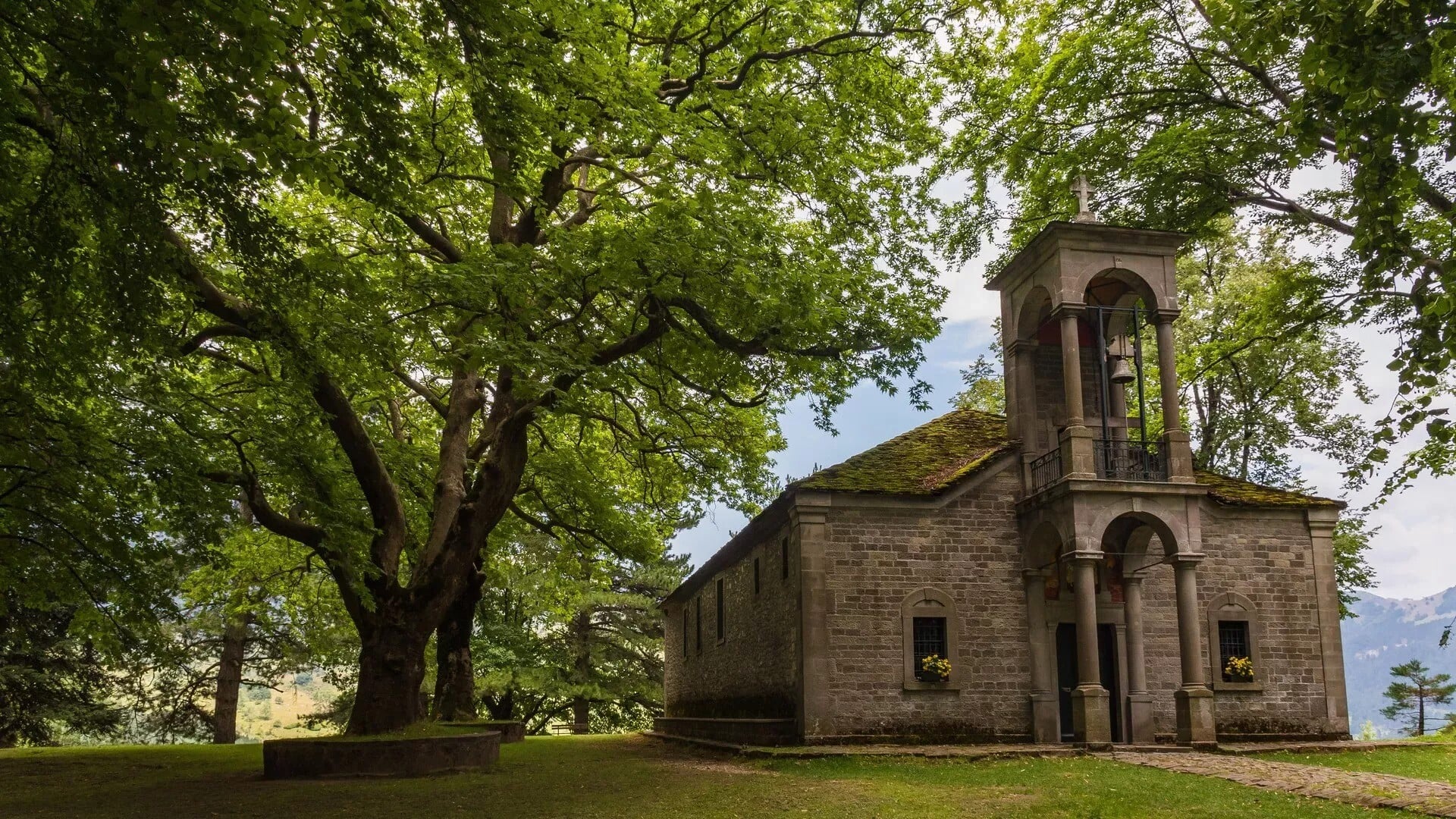 Στο κέντρο του κήπου βρίσκεται η εκκλησία του Αγίου Γεωργίου, όπου προσευχήθηκε ο ευπατρίδης προτού αναζητήσει την τύχη του στην Αλεξάνδρεια της Αιγύπτου. Από εκεί φρόντισε να στείλει έναν κηπουρό για τη δημιουργία του κήπου, ενώ επισκεύασε και το παλιό εκκλησάκι, καθώς, όπως φαίνεται, ο άγιος βοήθησε και με το παραπάνω.