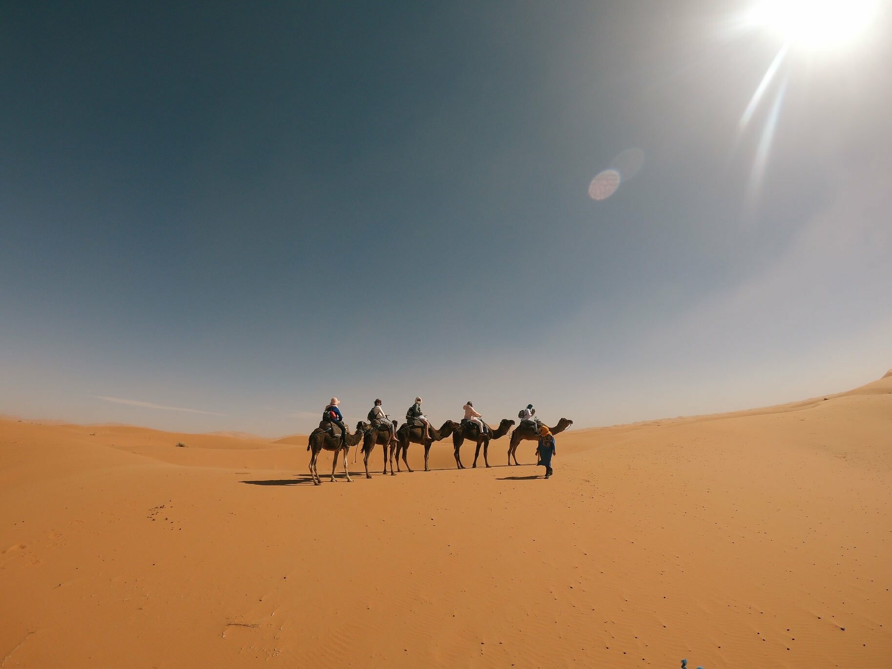 Όλα είναι τόσο καινούρια, διαφορετικά. Η άμμος μπαίνει παντού, στα παπούτσια, στις τσάντες. Αλλά δεν μας νοιάζει. Βρισκόμαστε στη Σαχάρα και θα περάσουμε το βράδυ μας εδώ.