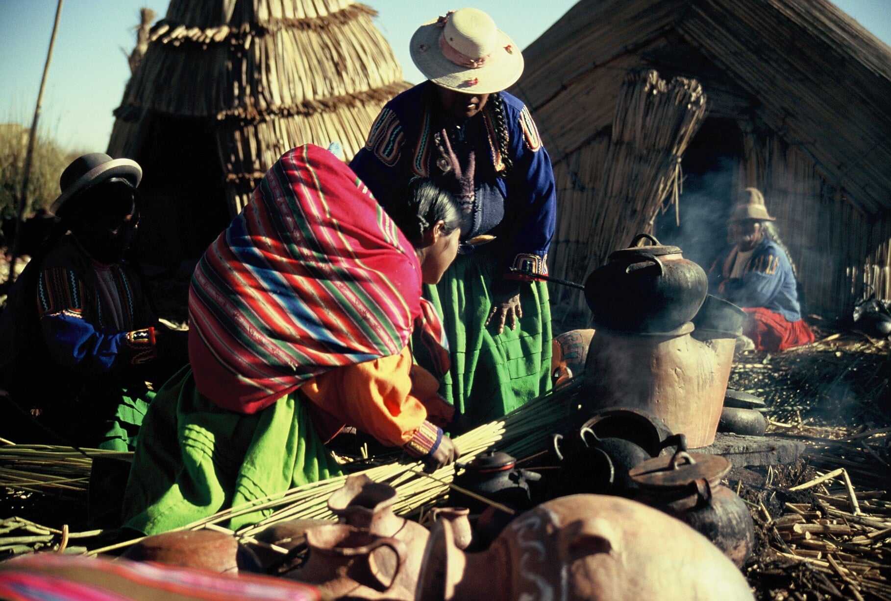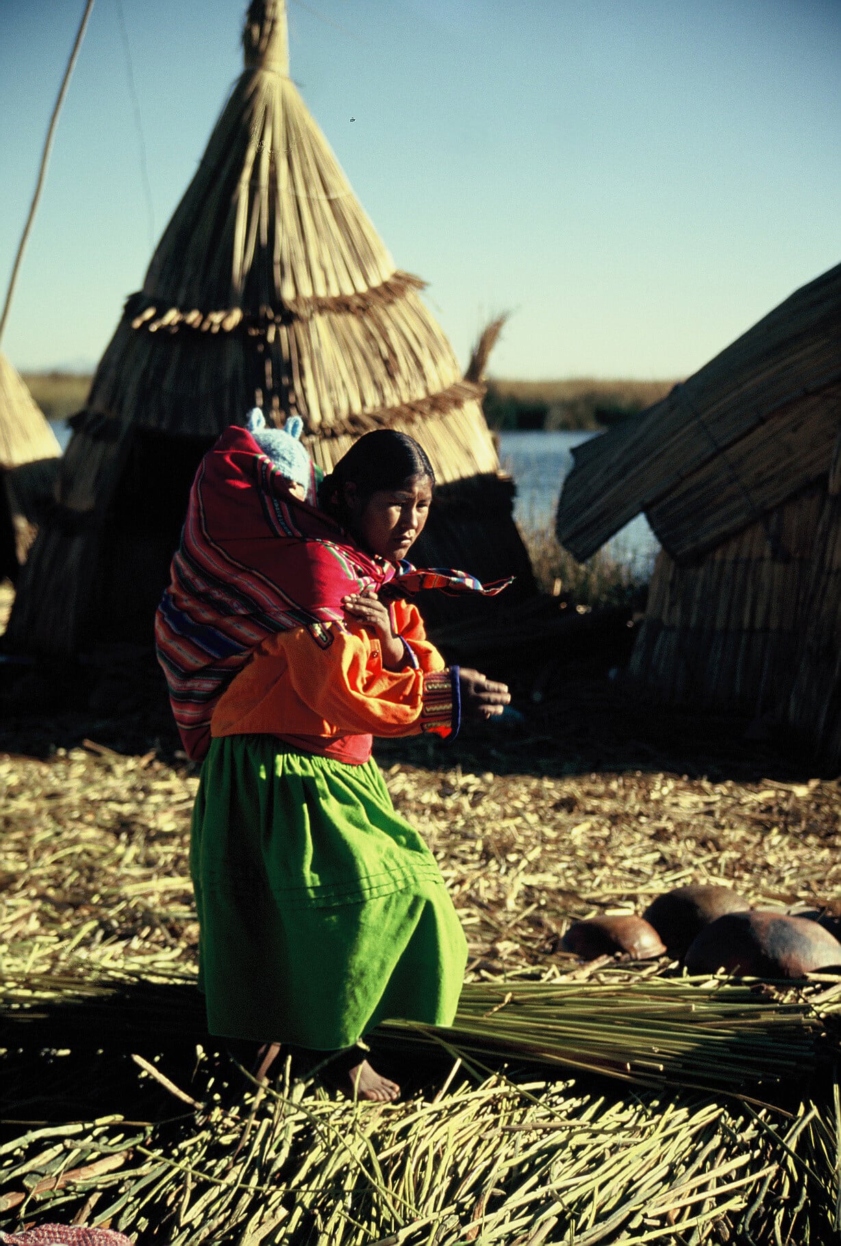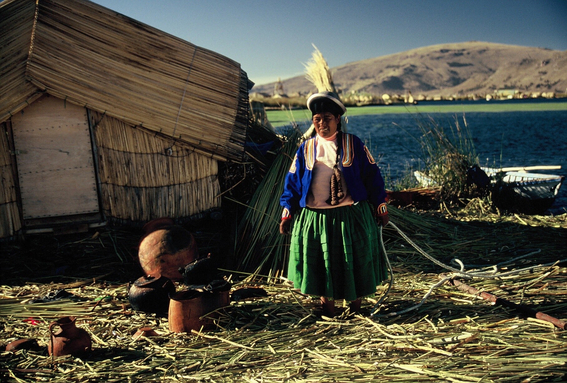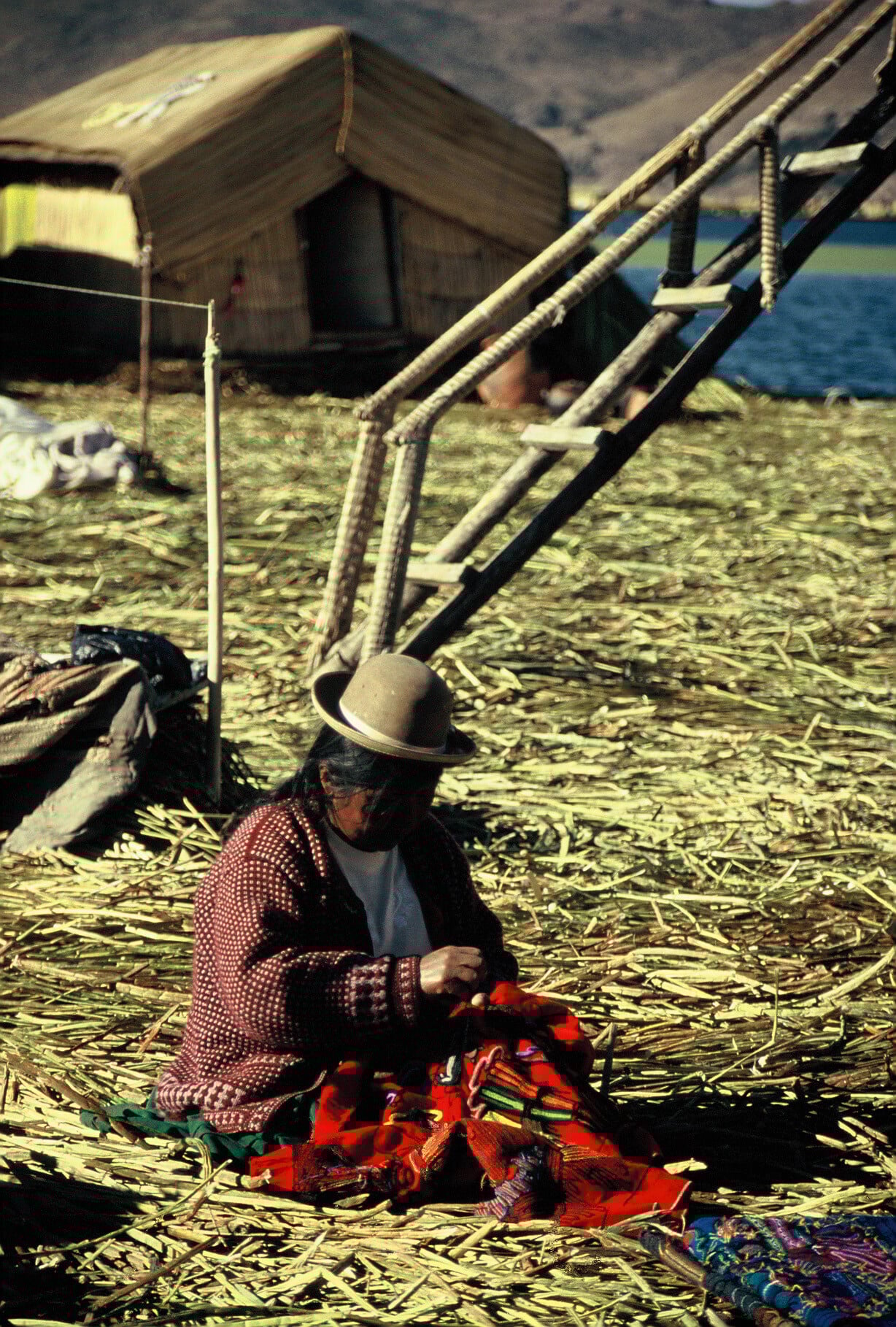 Από τους λίγους κατοίκους των νησιών, γυναίκες και παιδιά κυρίως, δεν ακούγεται κανένας θόρυβος, καμία φωνή, καμία φιλονικία. Θα έλεγε κανείς ότι τα νησιά κατοικούνται από φαντάσματα. Οι γυναίκες μπροστά στις εστίες φωτιάς μαγειρεύουν ή παραδίπλα ασχολούνται με εργασίες χειροτεχνίας. Στιγμές καθημερινές, εφήμερες, αιώνιες. Όλα αυτά τα νησιά, οι καλύβες, οι βάρκες, οι ηλιοκαμένοι άνθρωποι με το σκούρο δέρμα μοιάζουν να έχουν ξεπηδήσει από τον βυθό της λίμνης. Η φύση γίνεται ο μοναδικός δάσκαλος των αυτοχθόνων που εγκαταστάθηκαν σε αυτές τις τεχνητές συστάδες νησιών, τις καμωμένες από στρώσεις καλαμιών. Οι Άνδεις, η Τιτικάκα, στολίζουν με μεγαλείο τους φτωχούς ιθαγενείς και με σοφία τους αγράμματους.
