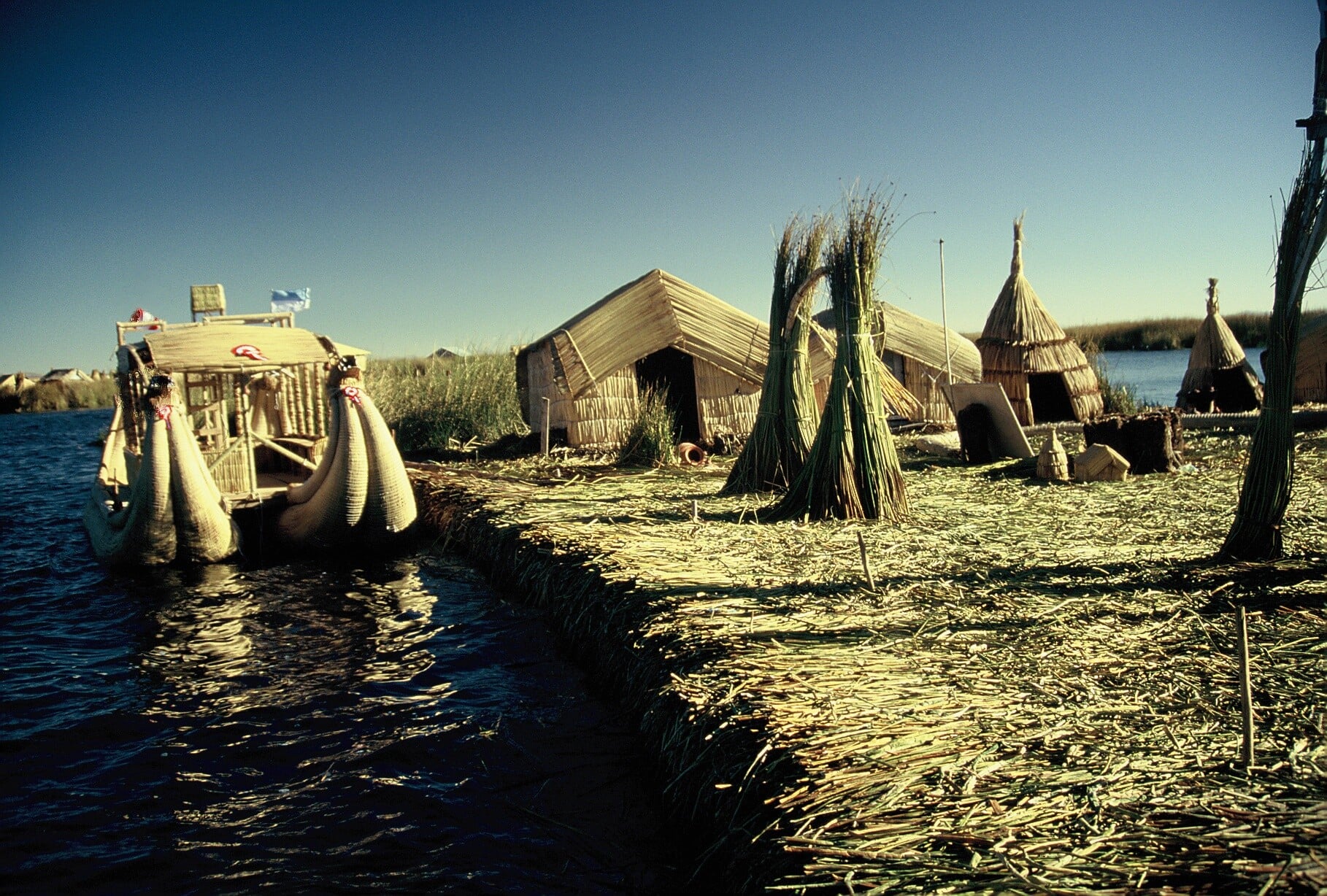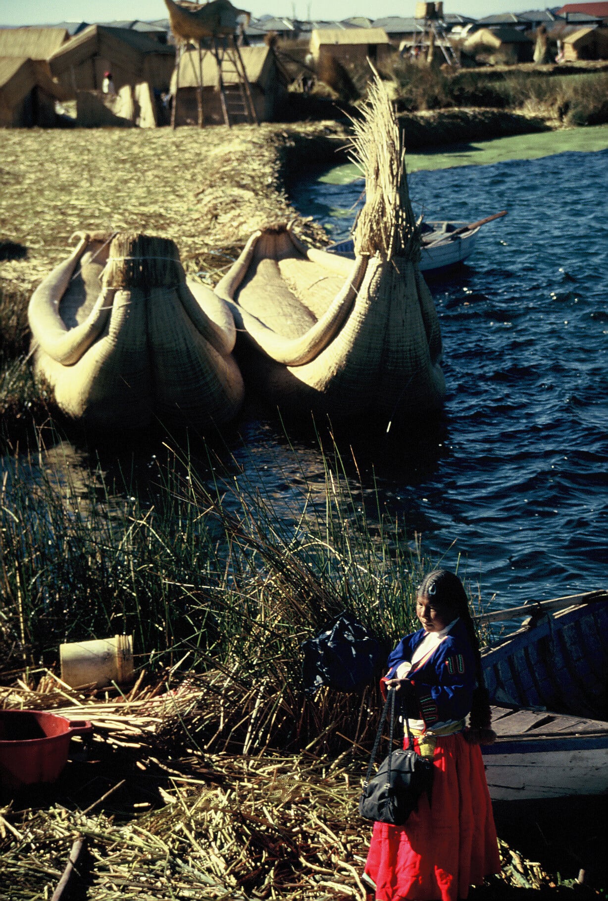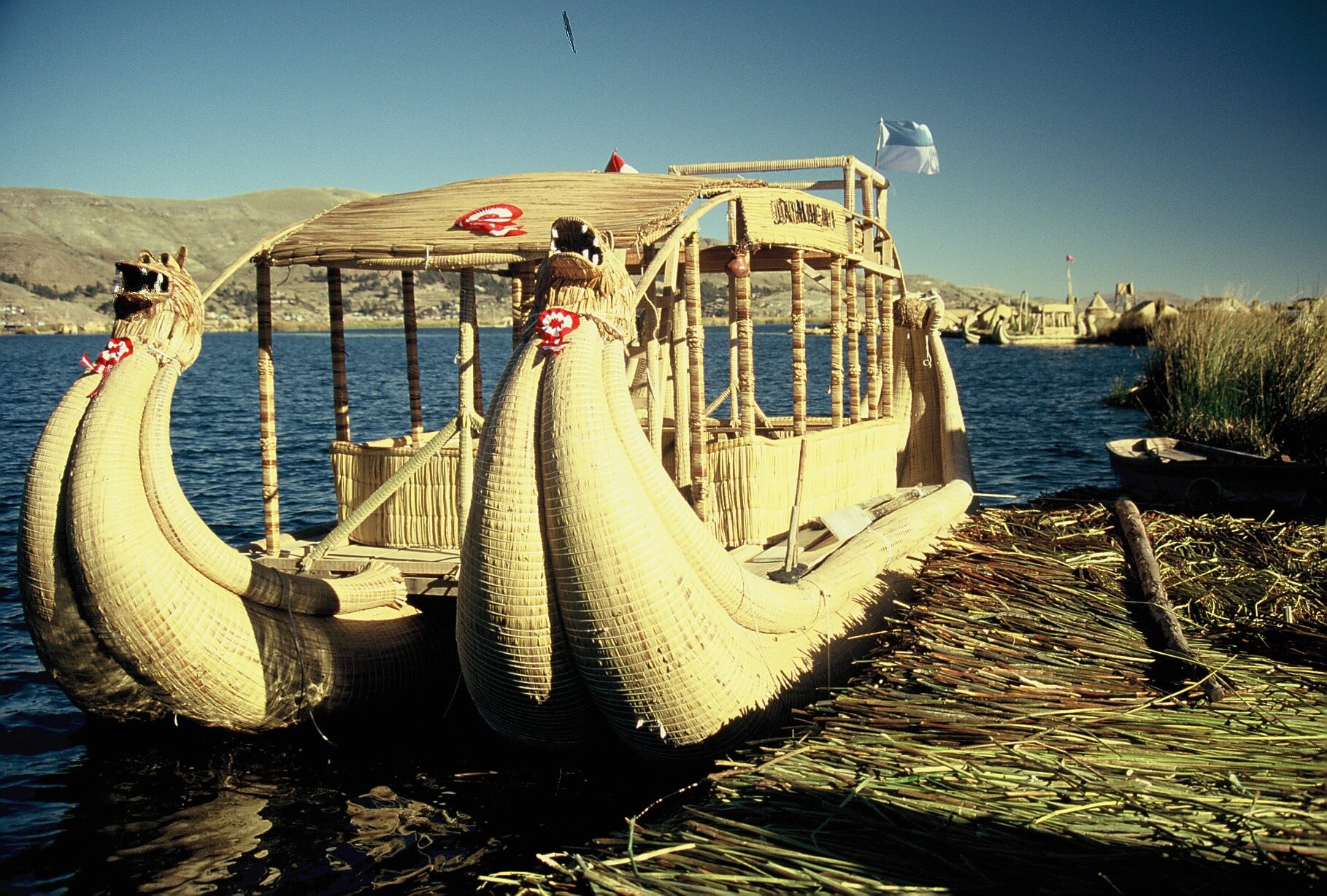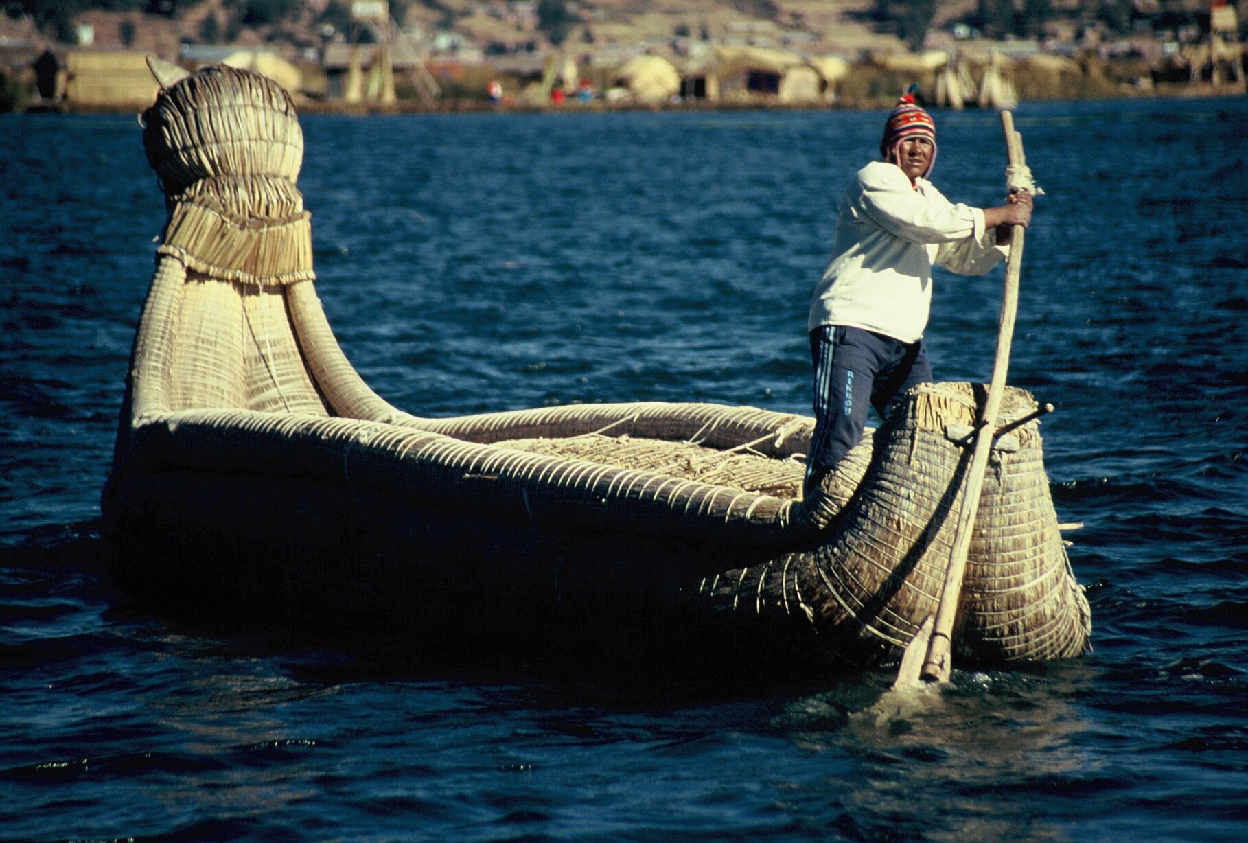 Σιγά σιγά, πλησιάζοντας το τροπικό δάσος από καλαμιώνες, αφήνομαι στο πνεύμα των νερών που θα με καθοδηγήσει στον λαβύρινθο από κανάλια που πλαισιώνουν τα νησιά Ούρος. Στα πρώτα επιπλέοντα νησιά, στην ανοιχτοπράσινη επιφάνεια των νερών της λίμνης πλέουν προς το μέρος μας οι καλαμένιες βάρκες, οι «balsas», που τις οδηγούν ψαράδες καθισμένοι στο πίσω μέρος, με τα πόδια ανοιχτά να βουτάνε στο νερό. Τα άρμενα, τα τετράγωνα σαν των κινέζικων καϊκιών πανιά τους, όλα είναι φτιαγμένα από καλάμια της λίμνης. Οι βάρκες μοιάζουν με βενετσιάνικες γόνδολες με υπέροχο περίγραμμα και φαρδιές πλευρές και περιβάλλονται από ένα μεγάλο κυλινδρικό εξόγκωμα που δεν τις αφήνει να βυθιστούν. Οι καλαμένιες βάρκες των Ούρος κάποτε ίσως να αποτελούσαν τη μοναδική ύπαρξη ζωής σ’ αυτό το πελώριο υγρό στρώμα με τα ελάχιστα πουλιά.