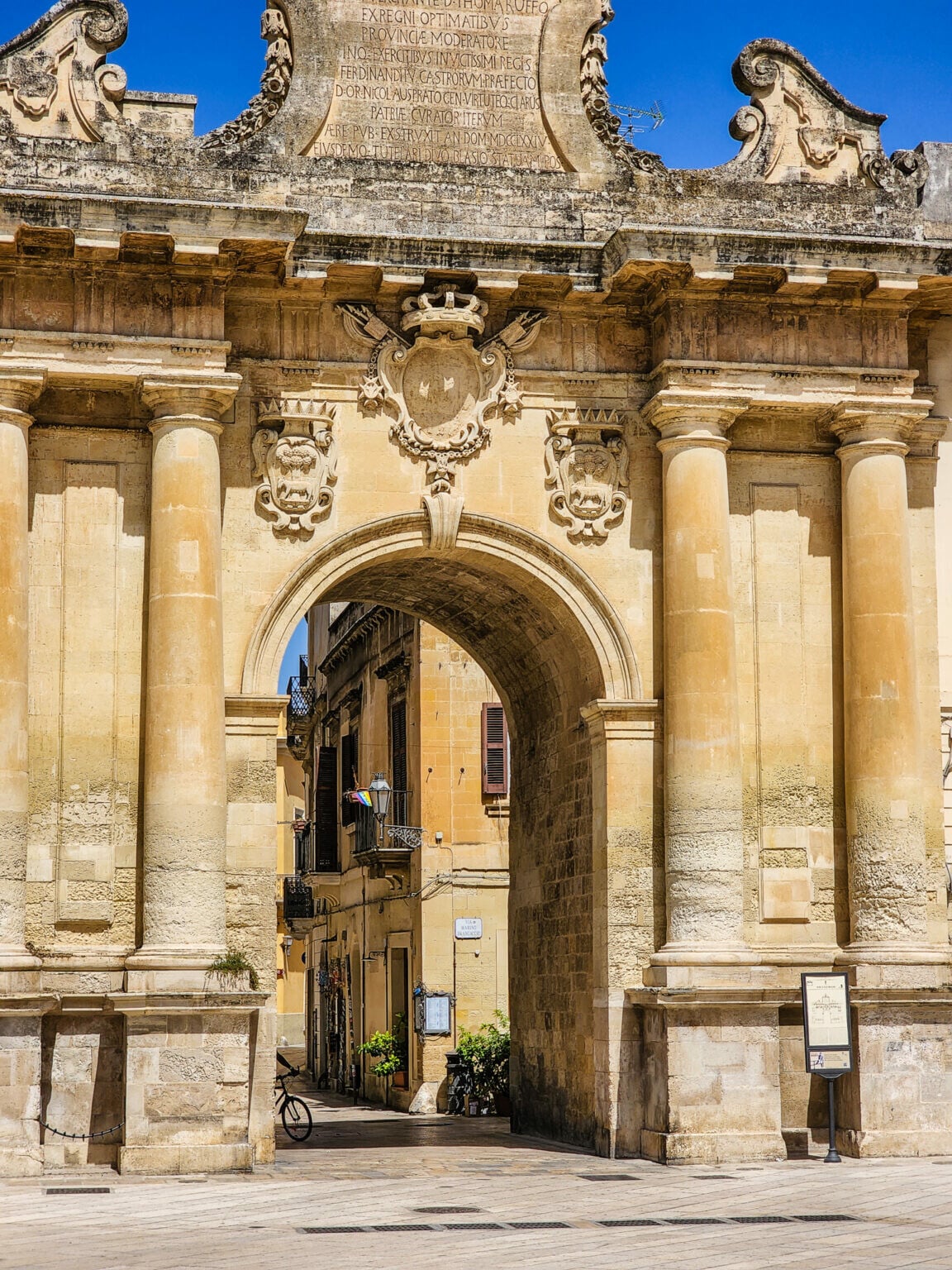Κάντε τη θριαμβευτική σας είσοδο από την Porta Napoli (περίπου 1548-1550), την κύρια πύλη από την ανατολή που «κοιτάζει» τη Νάπολη –εξού και το όνομα–, η οποία χτίστηκε για να τιμήσει την είσοδο του Καρόλου Ε' στο Λέτσε.