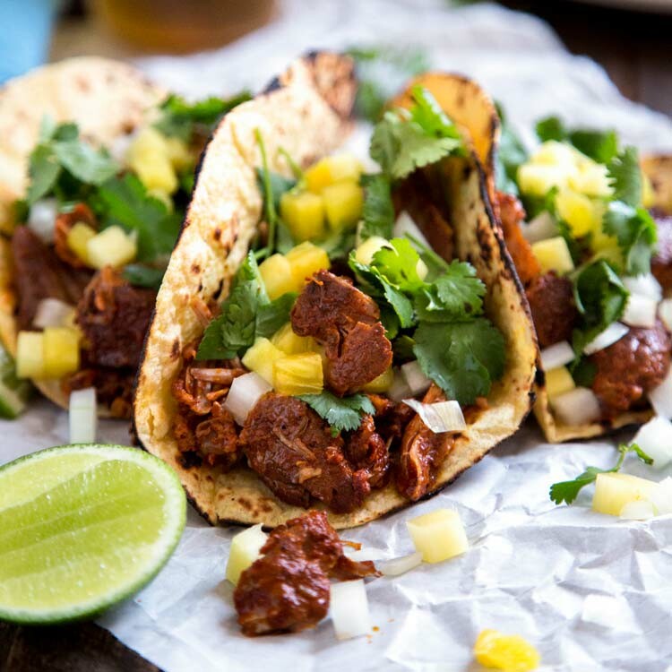 Από κει και πέρα, αρχίζει το πάρτι. Το διαφορετικό κρέας με το οποίο γεμίζονται κάθε φορά δίνει το όνομά του στα τάκος. Tα περίφημα tacos al pastor έχουν κρέας κόκκινο απ' τα μπαχαρικά, που ψήνεται όπως ο γύρος, σε σούβλα (δάνειο από τους Λιβανέζους μετανάστες που ήρθαν στη χώρα μετά το 1900) με ένα μεγάλο κομμάτι ανανά στην κορυφή της. Tα cochinita pibil, με καταγωγή από τους Mayas, σιγομαγειρεμένο-να λιώνει σχεδόν-χοιρινό, που πρώτα έχει μαριναριστεί σε χυμό εσπεριδοειδών, και σπόρους annato, παίρνοντας έτσι σκούρο πορτοκαλί χρώμα. Oι carnitas έχουν και πάλι χοιρινό, μαγειρεμένο αργά μέσα σε λαρδί με τεχνική που θυμίζει κονφί. Στα suadero θα βρεις μοσχαρίσια λάπα, διάφραγμα ή μπρίσκετ, στα tacos de pescado ψάρι (τηγανητό, ψητό ή καπνιστό), στα campechano (δηλαδή χωριάτικα) τσορίζο και βοδινό μαζί, ενώ τα guisados γεμίζονται με σπιτικά μαγειρευτά τύπου στιφάδο απ' ό,τι τυχαίνει να υπάρχει στην κουζίνα εκείνη τη ημέρα.