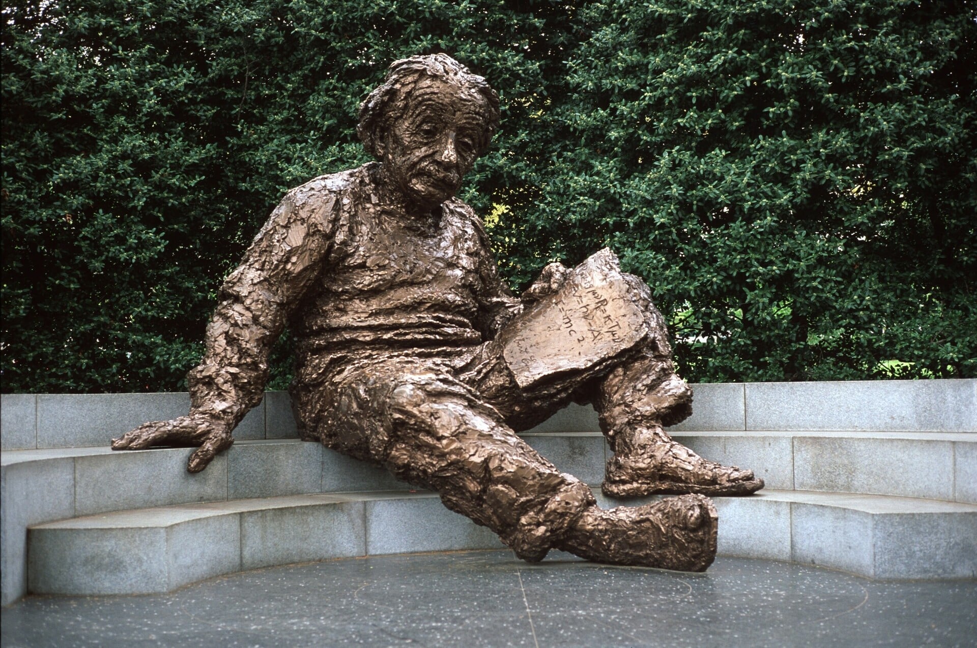 Έξω από την Εθνική Ακαδημία Επιστημών (NAS) της οποία εξελέγη μέλος το 1942, ένα τεράστιο άγαλμα του Άλμπερτ Αϊνστάιν βρίσκεται καθισμένο σε ένα ημικυκλικό παγκάκι. Στο χέρι του κρατά τις σημειώσεις του που περιλαμβάνουν τρεις από τους διασημότερους τύπους του: το φωτοηλεκτρικό φαινόμενο, τη γενική θεωρία της σχετικότητας και την ισοδυναμία μάζας-ενέργειας. Το άγαλμα εγκαινιάστηκε το 1979 και λόγω του μεγέθους του εμπνέει πρωτότυπες πόζες και φωτογραφίες, με τους επισκέπτες να σκαρφαλώνουν στο πόδι του ή να κάνουν ότι διαβάζουν μαζί του.