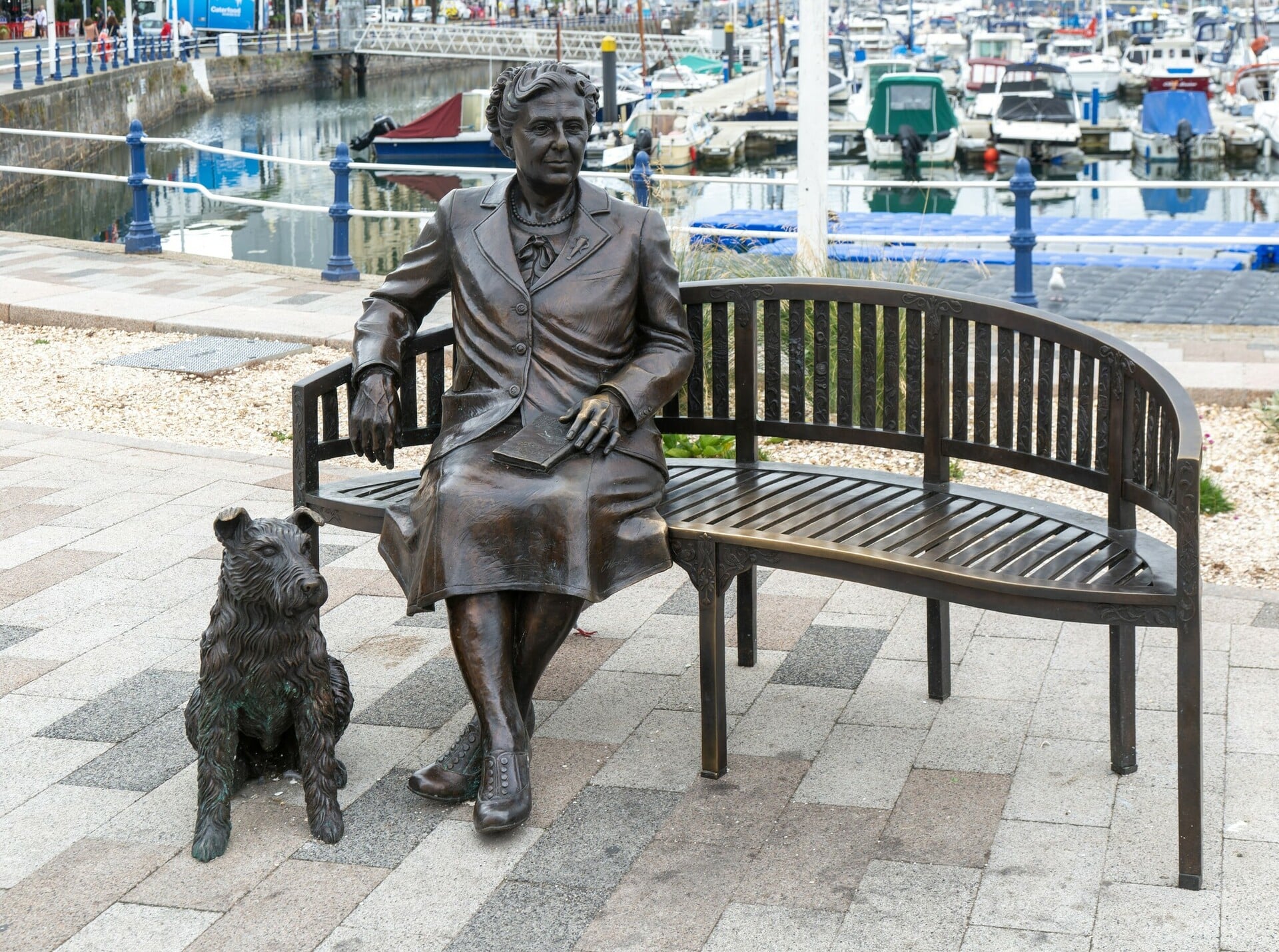 Εκτός από τα βιβλία της, η ίδια η ζωή της Αγκάθα Κρίστι ήταν ένα μυστήριο -οι λεπτομέρειες της εξαφάνισής της για 11 μέρες το 1926 παραμένουν ανεξιχνίαστες μέχρι σήμερα. Πάντως, όσοι επισκέπτονται την μικρή παραθαλάσσια πόλη Torquay στο Ντέβον, μπορούν να φωτογραφηθούν στο μπρούτζινο παγκάκι -γλυπτό με το άγαλμά της που συμπληρώνει και ο αγαπημένος της σκύλος Πίτερ. Το βιβλίο που κρατά στο χέρι της είναι ένα από τα διασημότερα μυθιστορήματά της «Και δεν έμεινε κανένας» (And then there were none), το οποίο η γλύπτρια Elisabeth Hadley που φιλοτέχνησε το άγαλμα θεωρεί ως «το ιδανικό μυθιστόρημα».