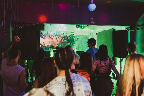 Το κοινό του πάρτι είναι άτομα κάθε φύλου, open minded και πρωτοποριακά σε κάθε τους έκφραση, προσωπική ή καλλιτεχνική. Ο χώρος είναι ένα μεγάλο δωμάτιο όπου ο DJ παίζει πίσω από ένα ενυδρείο και η ατμόσφαιρα είναι το peak ενός πάρτι, παρότι είναι δύο το μεσημέρι. Όλα τα άτομα χορεύουν, κάποια τσιλάρουν στο μπαλκόνι (μόλις έχει σταματήσει η βροχή και έχει βγει ένας λαμπερός ήλιος), άλλα χαλαρώνουν στον καναπέ. Ο DJ είναι κάτι σαν σαμάνος που στέλνει στο κοινό technο προσευχές. Θυμίζει όντως βερολινέζικο πάρτι με πολύ ωραία πρόσωπα που δεν συναντάς συχνά μαζεμένα.