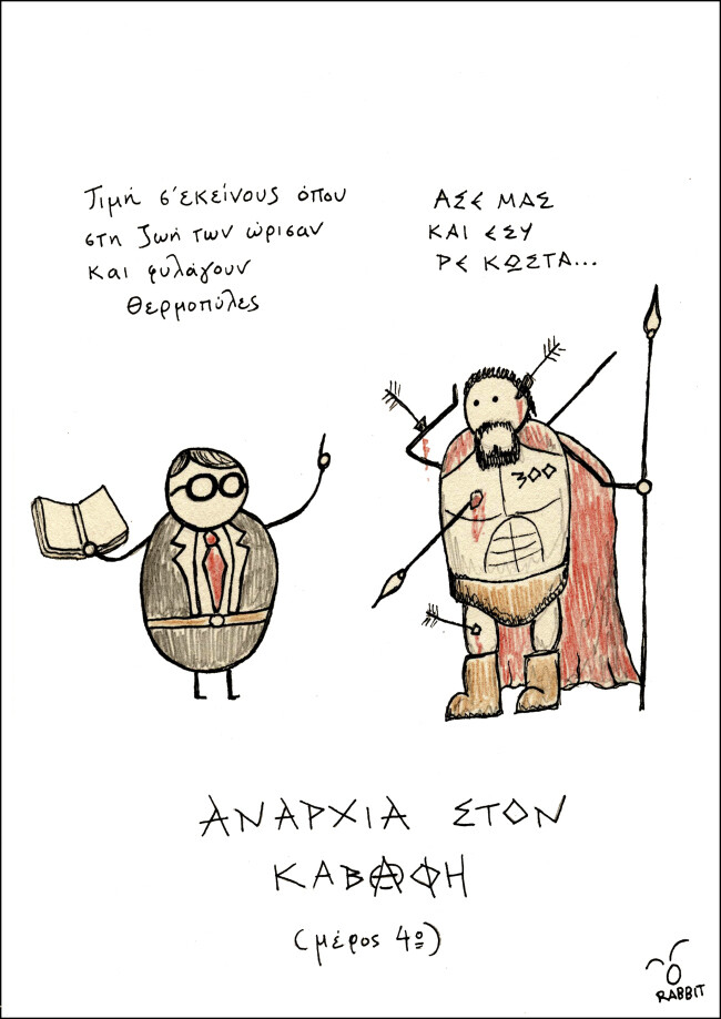 Συνάντησα τον Τhe Rabbit στην ατομική του έκθεση, στο «Its all so souvenir to me» στο Μοναστηράκι. Δεν χρειάστηκε πολύ ώρα να καταλάβω ότι πρόκειται για έναν τύπο ιδιαίτερα οξυδερκή, με απλότητα, σύνεση και χιούμορ. Εξάλλου αυτό γίνεται άμεσα αντιληπτό μέσα από τα μινιμαλιστικά, καυστικά σκίτσα του.