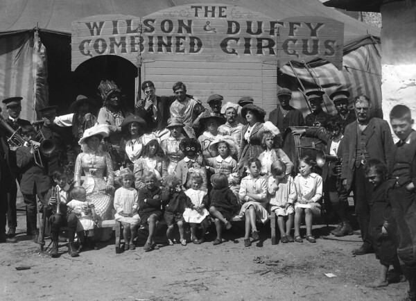 Οι ομάδες καλλιτεχνών τσίρκου που περιόδευαν πριν το 1914 ήταν λίγες, αλλά τότε ήταν η χρυσή τους εποχή. Οι σκηνές φωτιζόταν από φλόγες και ο ηλεκτρισμός άρχισε να γίνεται κοινός το 1920. Οι φωτογραφίες αυτές βγήκαν κατά τη διάρκεια της ημέρας, σε εξωτερικούς χώρους. Όλες βγήκαν κατά πάσα πιθανότητα κατά την επίσκεψη του τσίρκου Duffy's Circus στην πόλη Strabane της Βόρειας Ιρλανδίας, το 1911.