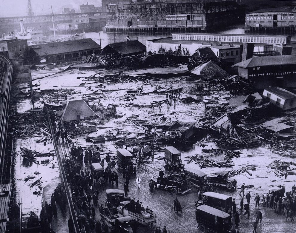 Η μεταλλική δεξαμενή ύψους ίσο με αυτό πέντε ορόφων, είχε εκραγεί και τα 2,3 εκατ. γαλόνια μελάσας είχαν ξεχυθεί ορμητικά από τη διασταύρωση των οδών που στεγάζοταν η βιομηχανία παραγωγής της εταιρείας. Ήταν μια πολύ κακή στιγμή για όποιον βρέθηκε σε εκείνο το νότιο σημείο της πόλης.