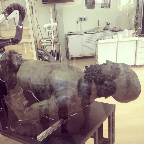Τελικά τα μπρόντζι τα φιλοξενούσαν στο μέγαρο που στεγάζεται και η rai, η κρατική τηλεόραση, και μπορούσες να τα δεις δωρεάν. Δεν θέλω να βαραίνω την αφήγησή μου με άχρηστες πολιτιστικές πληροφορίες, αλλά αξίζει να γράψω δυο λόγια για τους χάλκινους γίγαντες που κανονικά τους λένε «πολεμιστές του Riace» και είναι δυο εντυπωσιακά και καλοδιατηρημένα ορειχάλκινα αγάλματα του 450 ή 400 π.Χ., τα οποία βρέθηκαν στον βυθό της θάλασσας κοντά στο Porticello. Ζυγίζουν 160 κιλά το καθένα, κι έχουν ύψος δύο μέτρα. Στο ένα σώζονται τα μάτια από γυαλί και ελεφαντόδοντο, τα δόντια από ασήμι και τα χείλια από χαλκό [σε άριστη κατάσταση για έργο τέτοιας ηλικίας]. Το άλλο δεν κατάφερα να το δω τόσο λεπτομερώς, γιατί όπως τα έχουν τώρα στο μουσείο [ξάπλα σε «κρεβάτι χειρουργείου» μέσα σε ένα επιστημονικό εργαστήριο από γυαλί και με ένα σωρό μηχανήματα συντήρησης τριγύρω], είναι λες και τα ετοιμάζουν για τριπλό μπαϊπάς και είναι αδύνατο να δεις τις λεπτομέρειες. Λοιπόν, αυτά τα πολύ όμορφα αγάλματα έχουν ασορτί μαλλί με τρίχες στο εφηβαίο [το ένα σγουρές-μπούκλες και το άλλο σπαστές] και μικροσκοπικά πουλιά, και είναι διαφορετικής τεχνοτροπίας, ο ένας φιλόσοφος και ο άλλος πολεμιστής. Κάποιοι λένε ότι τα έστελναν δώρο από το μαντείο των Δελφών και τα είχε φτιάξει ο Φειδίας, άλλοι ότι τα είχε φτιάξει ο Πολύκλειτος και αναπαριστούν τον Ποσειδώνα, ή τον Δία, ή τον Έκτορα ή τον Αχιλλέα [εγώ ψηφίζω Αχιλλέα δαγκωτό]. Αν τα είχε πληρώσει κάποιος και τα περίμενε να στολίσει το σπίτι του, θα πρέπει να ήταν πολύ άτυχος, γιατί το πλοίο ναυάγησε λίγο έξω απ’ το λιμάνι.