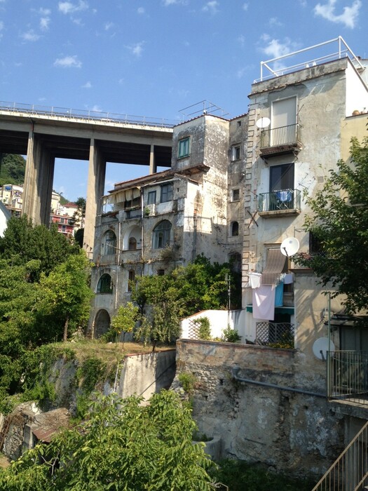 Η ελληνόφωνη περιοχή της Καλαβρίας έχει πολύ όμορφα χωριά και κάποια πολύ εντυπωσιακά όπως το Πεντεντάτιλο [δηλαδή πενταδάχτυλο στα ελληνικά της Καλαβρίας που μα τω Θεώ θυμίζουν όσα λέει ο δίχρονος ανιψιός μου όταν επαναλαμβάνει τις νέες λέξεις που ακούει], ένα απίστευτης ομορφιάς ημι-εγκαταλειμμένο χωριό στα ριζά ενός βράχου. Το ραδιόφωνο της περιοχής έπαιζε και ξανάπαιζε σύγχρονες επιτυχίες όπως το Delicate του Terence Trent D’ Arby και το Sweet Dreams των Eurythmics. Λίγο μετά το μεσημέρι ξεκινήσαμε το μεγάλο ταξίδι για το Σαλέρνο, ανεβαίνοντας όλο το μπροστινό μέρος της μπότας. Μαζί με το dell’ Aspromonte αποχαιρετάς και τους κάμπους και τα τοπία με τα ξερά χόρτα και για αμέτρητα χιλιόμετρα οδηγάς μέσα από δεκάδες τούνελ και γέφυρες σε τεράστια ύψη που είναι ο φόβος κι ο τρόμος όποιου έχει υψοφοβία [δηλαδή εμένα]. Όσο πιο βόρεια ανεβαίνεις τόσο αυξάνεται και η βλάστηση και το τοπίο γίνεται «αλπικό». Κάπου εδώ αποχαιρετάς και τα εργαστήρια κατασκευής προκάτ αγαλμάτων του Ιησού και της παρθένου Μαρίας που ποτέ δεν ήταν βολικά για να φωτογραφίσω, έβγαλα όμως ένα σωρό Χριστούς, πάπες και παναγίες σε πλατείες χωριών που είναι από μόνοι τους ένα ξεχωριστό ποστ. Πρόσεχε τον παρακάτω Ιησού σε πόσο σοκαριστικά σέξι πόζα είναι τοποθετημένος στην έξοδο [ή στη είσοδο;] ενός χωριού νότια, έτοιμος για stage diving, με τα χέρια απλωμένα σαν τον Ιησού του βίντεο που χορεύει το I Will Survive και με σκίσιμο μέχρι ψηλά στο μηρό, πιο ψηλά δεν γίνεται.