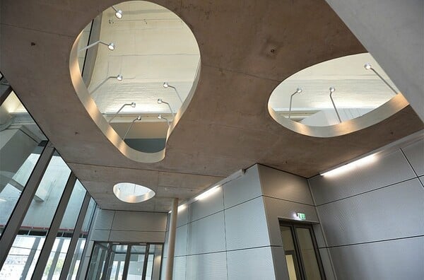 Τα γραφεία αποτελούνται από δύο γυάλινους πύργους, ύψους 185 και 165 μέτρων, που ενώνονται με ένα κεντρικό αίθριο. Στον 41ο όροφο τα διοικητικά μέλη συγκεντρώνονται στην αίθουσα συναντήσεων του συμβουλίου, σε ένα κυκλικό τραπέζι με θέα το ποτάμι και την πόλη. Στην οροφή βρίσκεται ένας αφηρημένος χάρτης της Ευρώπης από αλουμίνιο, που ενισχύει την ακουστική και διαχέει το φως.