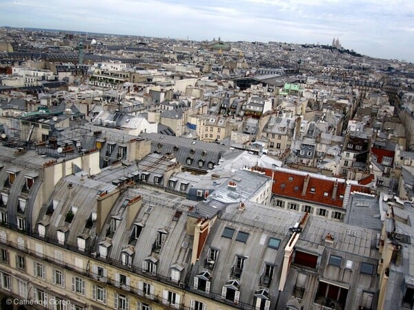 Το Παρίσι από ψηλά έχει άλλη χάρη. Η αίγλη της πόλης όταν έχεις θέα στις ταράτσες και στα ψηλά παράθυρα των τελευταίων διαμερισμάτων, είναι ακόμη πιο ρομαντική και θυμίζει εποχή διαφορετική. Τα μικρά, σχεδόν ιδιωτικά μπαλκόνια, οι καμινάδες, οι σοφίτες, τα κεραμίδια, συνθέτουν ένα τοπίο που από το έδαφος δεν μπορεί να αποκαλυφθεί.