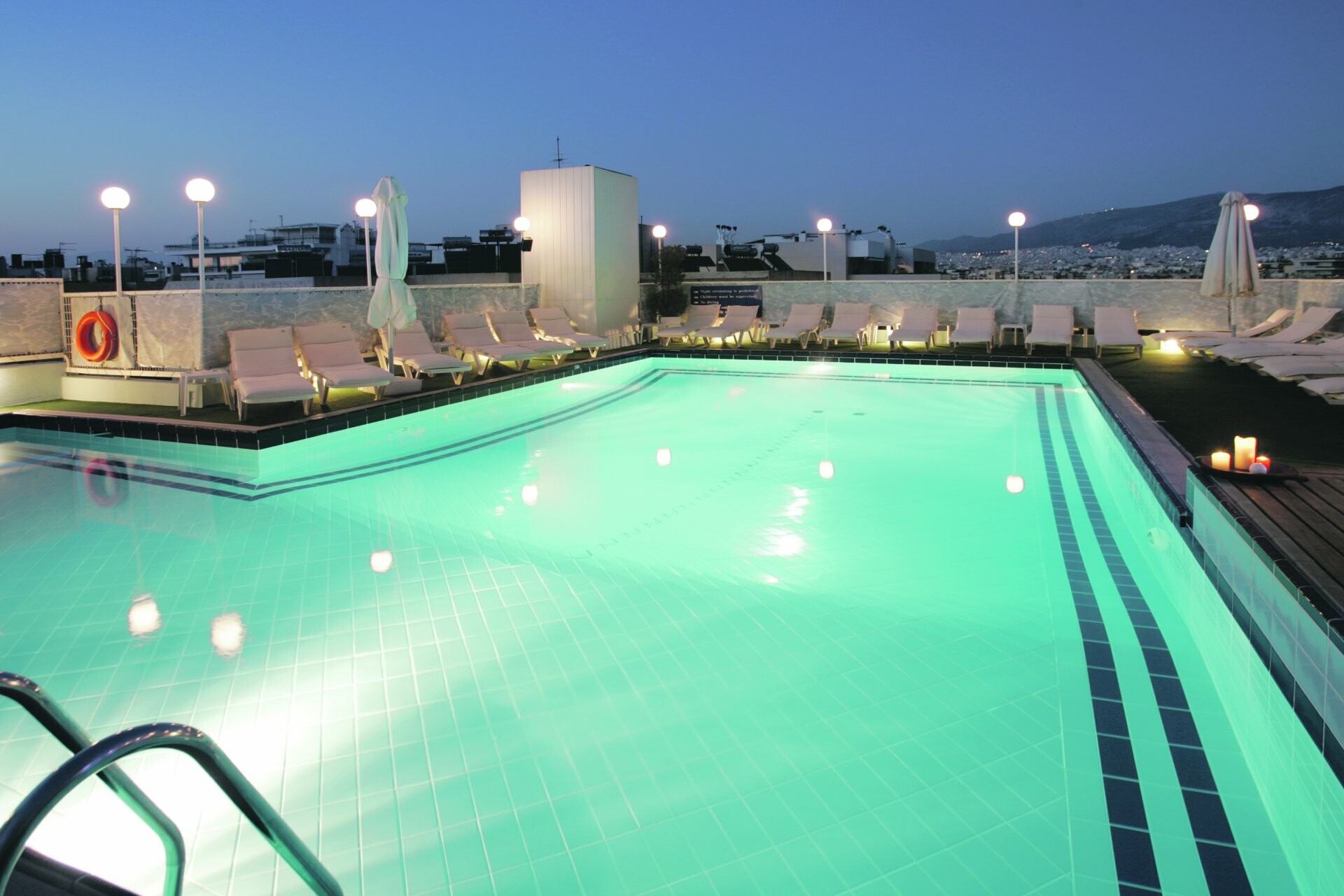 Η πισίνα του Saint George Lucabettus κοστίζει €34 και στην τιμή περιλαμβάνονται ξαπλώστρες και αναψυκτικό.