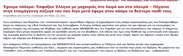To blog tης "Χρυσής Αυγής" από νωρίς είχε τοποθετηθεί πάνω στο θέμα της δολοφονίας του 44χρονου σε άρθρο με τίτλο "Εχουμε πόλεμο"